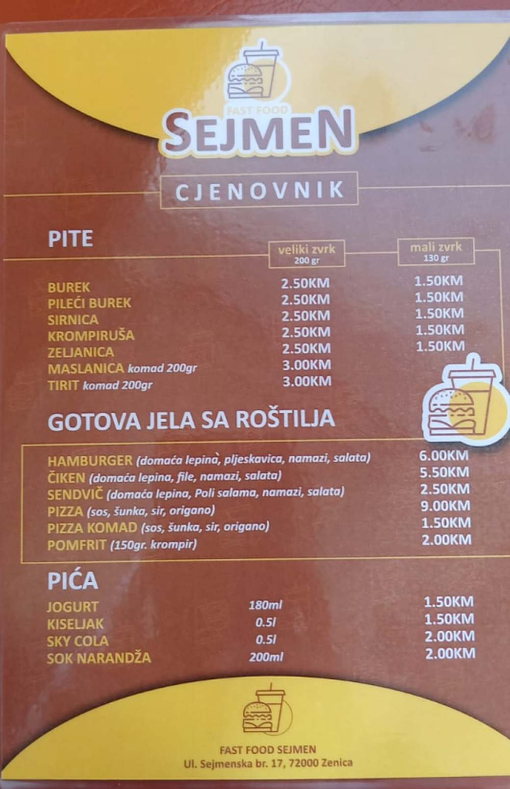 Posjetite i naručite – u danima Ramazana – Fast food Sejmen – Adresa : Sejmenska br.17 – Jalija