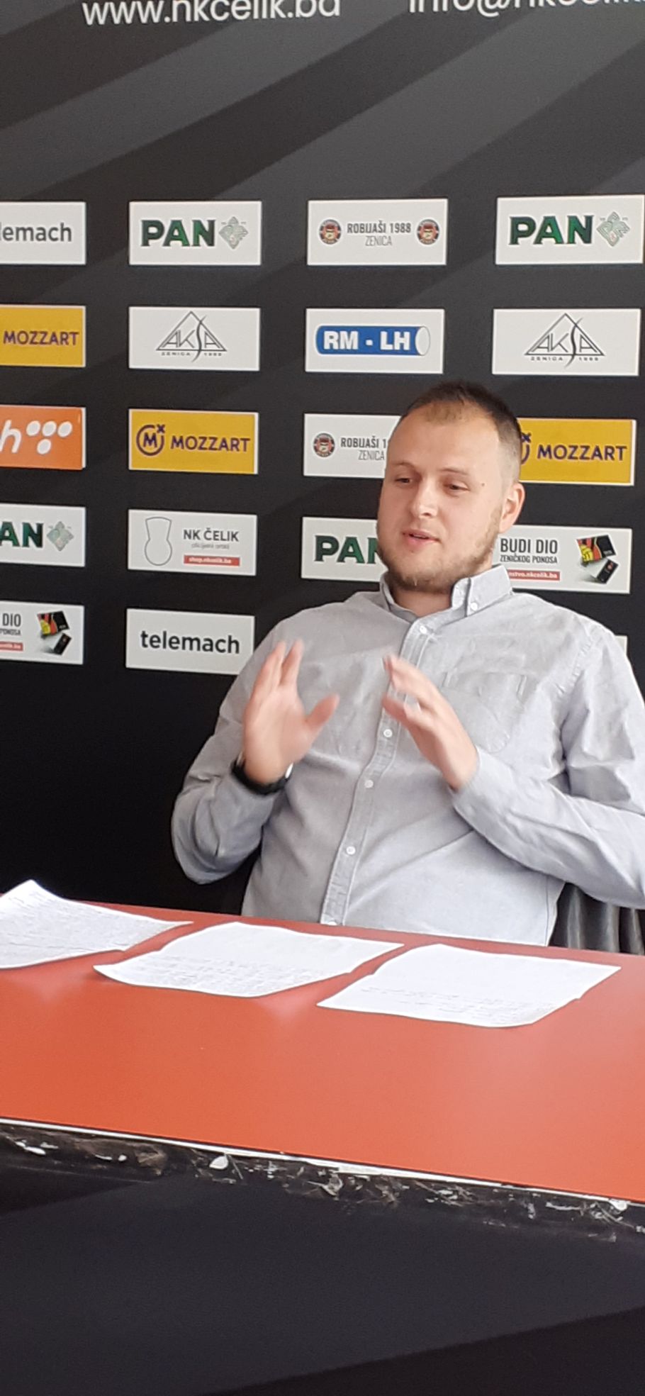 Predstavio je novog trenera i istakao da je on dijete Čelika i da je prošao sve selekcije kluba i imao zavidne rezultate u karijeri. Preuzeo je seniorski klub nakon trenera Pavla Skočibušića, koji je otišao na njegovo mjesto za trenera juniora NK Čelik, koji nastupa u omladinskoj ligi BiH, grupa „Centar 2“.