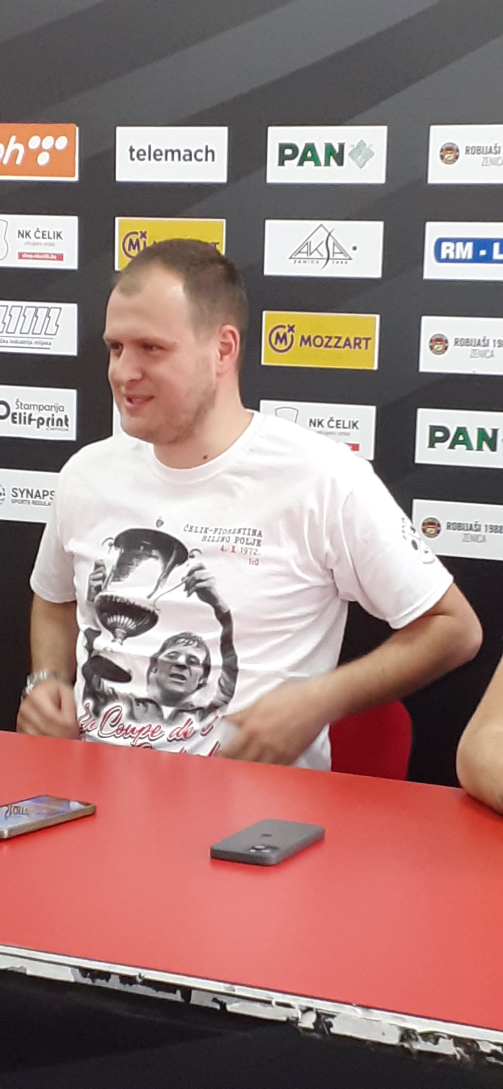 U samom uvodu pressa predstavljena je nova majica u kolekciji Fan shop-a NK Čelik Zenica, majica s legendarnom fotografijom Fadila Talića sa trofejom SE Kupa nakon pobjede nad italijanskom Fiorentinom – La Coupe de l’ Europe Centrale.