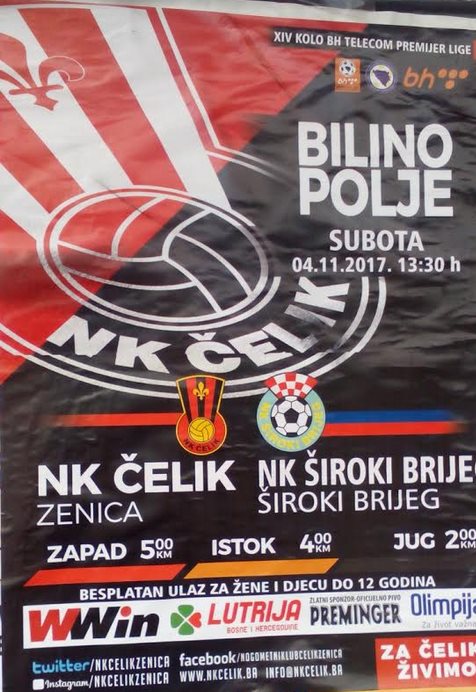 Da ponovimo, utakmica NK Čelik – NK Široki Brijeg na rasporedu je u subotu, 04.novembra 2017.godine u 13,30 sati na stadionu Bilino polje u Zenici.