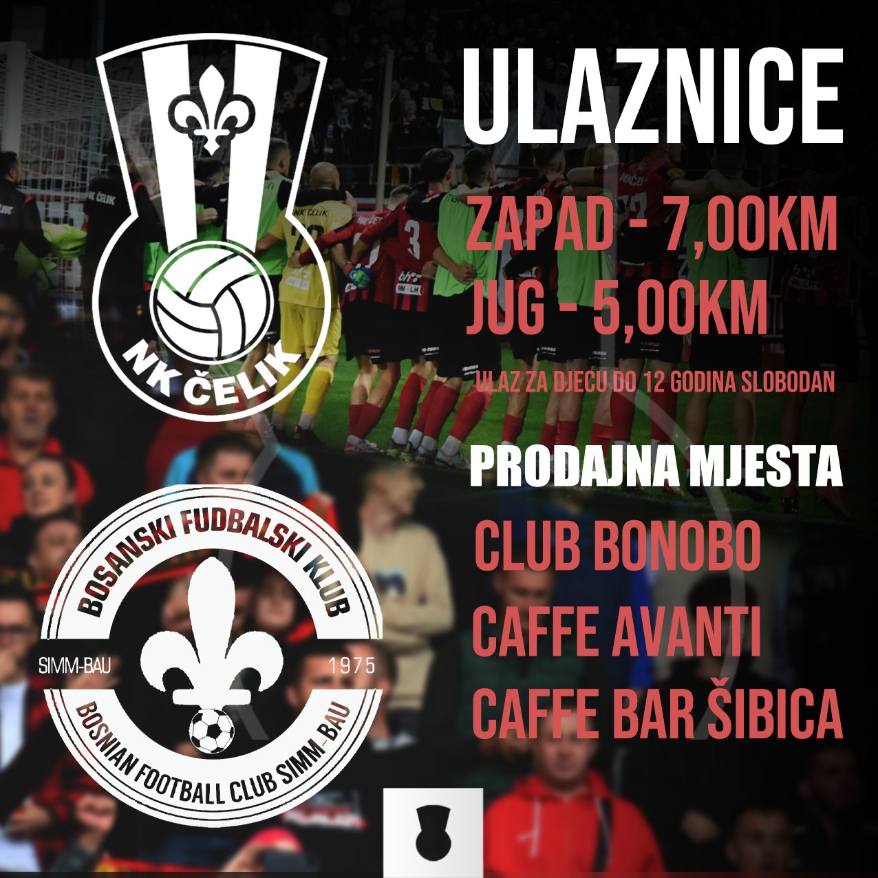 Ulaznice za utakmicu Čelika – Simm Bau možete kupiti već od danas u ugostiteljskim objektima Bonobo, Avanti i Šibica. Cijena ulaznice za zapadnu tribinu iznosi 7,00KM dok ulaznica za tribinu jug košta 5,00KM.