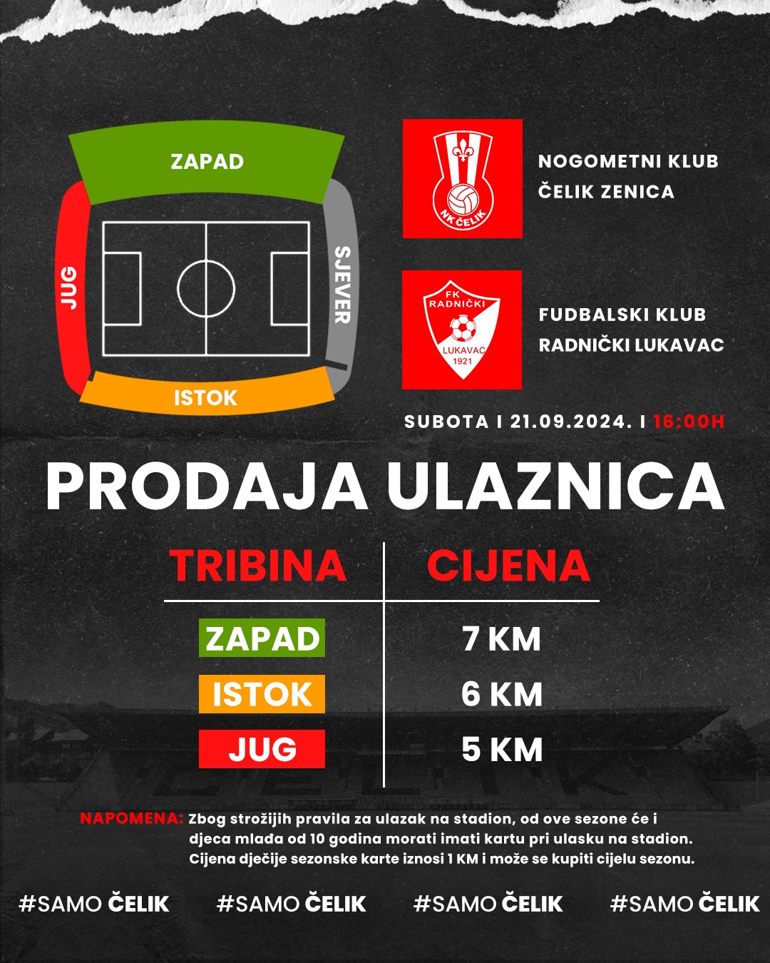 Subota, 21. septembar 2024.godine, NK Čelik – FK Radnički u 16 sati na stadionu Bilino polje u Zenici.