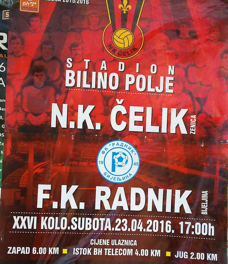 Da ponovimo, utakmica NK Čelik – FK Radnik  na rasporedu je u subotu 23.aprila 2016.godine u 17 sati na stadionu Bilino polje u Zenici.