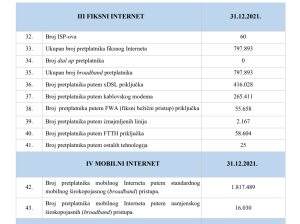 Ukupni broj aktivnih pretplata mobilne mreže je u odnosu na 2020. (3.509.674) u porastu 3.728.775.