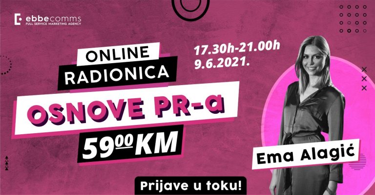 PRIJAVE OTVORENE: Online radionica OSNOVE PR-a- Marketing agencija EBBE COMMS objavljuje poziv za učešće na online radionici o temi “Osnove PR-a”.