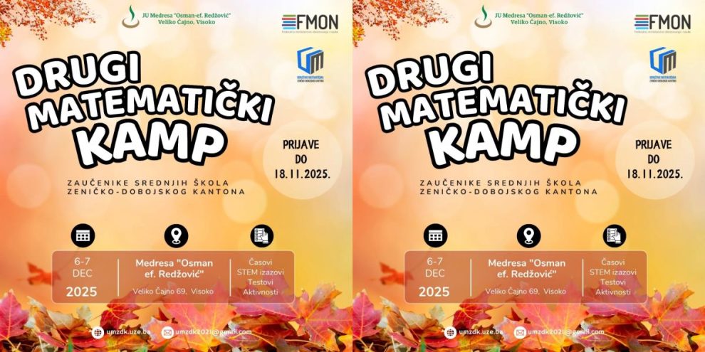 Udruženje matematičara Zeničko-dobojskog kantona, u saradnji s Federalnim ministarstvom obrazovanja i nauke, organizuje Drugi matematički kamp za učenike srednjih škola na području ZDK.