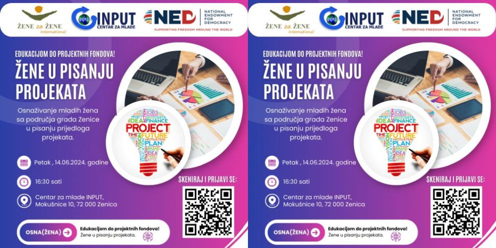 Projekat ima za cilj pružiti ženama potrebna znanja i vještine o pisanju projekata kako bi mogle uspješno aplicirati za finansiranje svojih projekata. Kroz edukaciju, žene će imati priliku naučiti o strukturi, procesu apliciranja, razvoju projektnih prijedloga, budžetiranju i upravljanju projektima.
