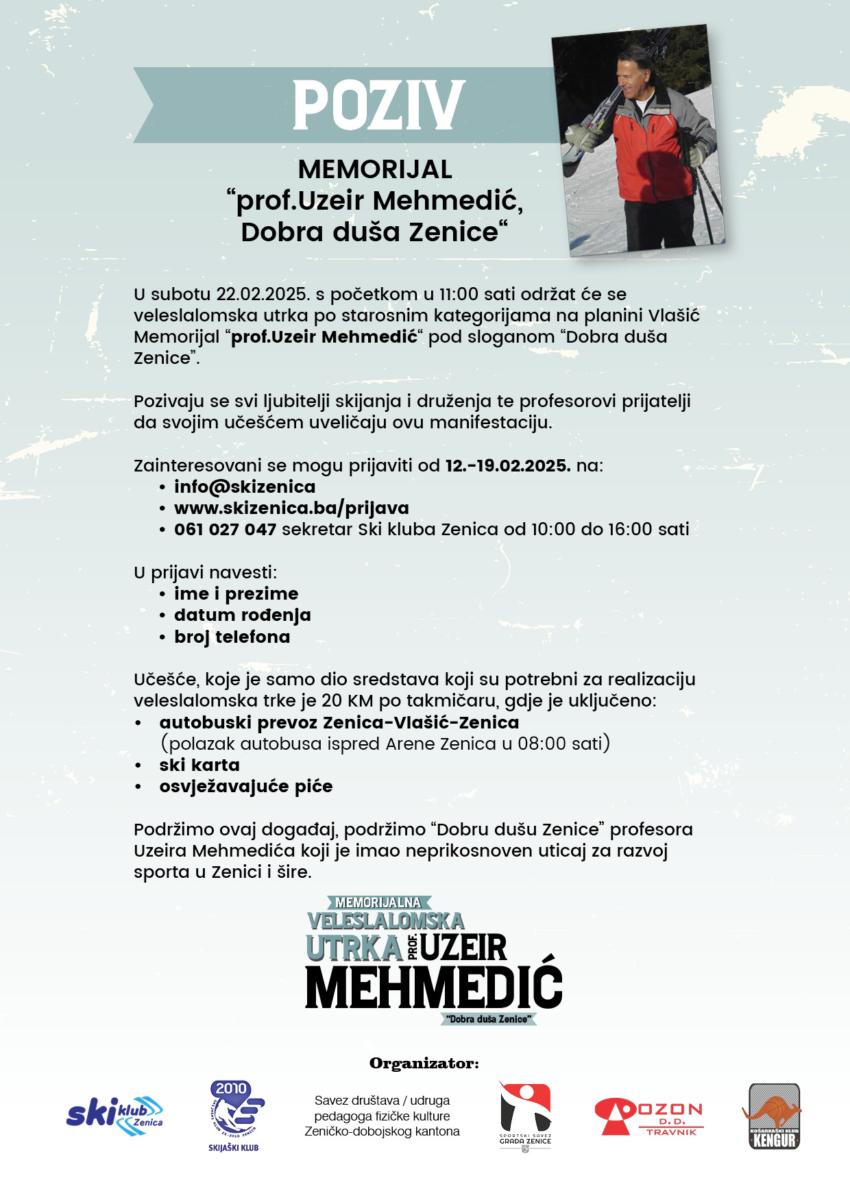 U znak sjećanja na istaknutog sportskog radnika, trenera i univerzitetskog profesora Uzeira Mehmedića planirano je da se 22.02.2025. na planini Vlašić, skijaški teren Babanovac, održati veleslalomska utrka.