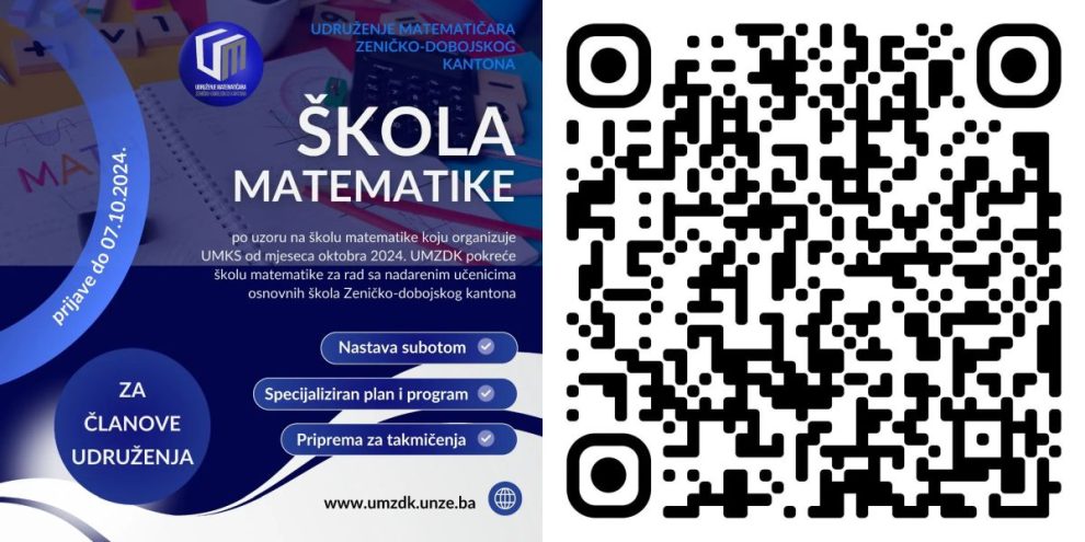 Detalje vezane za Školu matematike pogledajte na našoj web stranici: umzdk.unze.ba/skola-matematike/