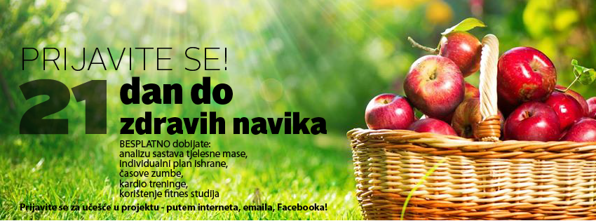 Prijavite se – 21 dan do zdravih navika – projekat INZ-a i partnera – Institut za zdravlje i sigurnost hrane Zenica, u partnerstvu sa stručnjacima iz oblasti nutricionizma, tjelovježbi i zdravlja, pokreće projekat u povodu Svjetskog dana zdravlja – 21 dan do zdravih navika. Imate jedinstvenu priliku da, uz pomoć stručnjaka, usvojite zdrave prehrambene i životne navike, kao stil života s krajnjim ciljem poboljšanja i očuvanja zdravlja, tjelesne kondicije, ali i psihičke svijesti ljudi.