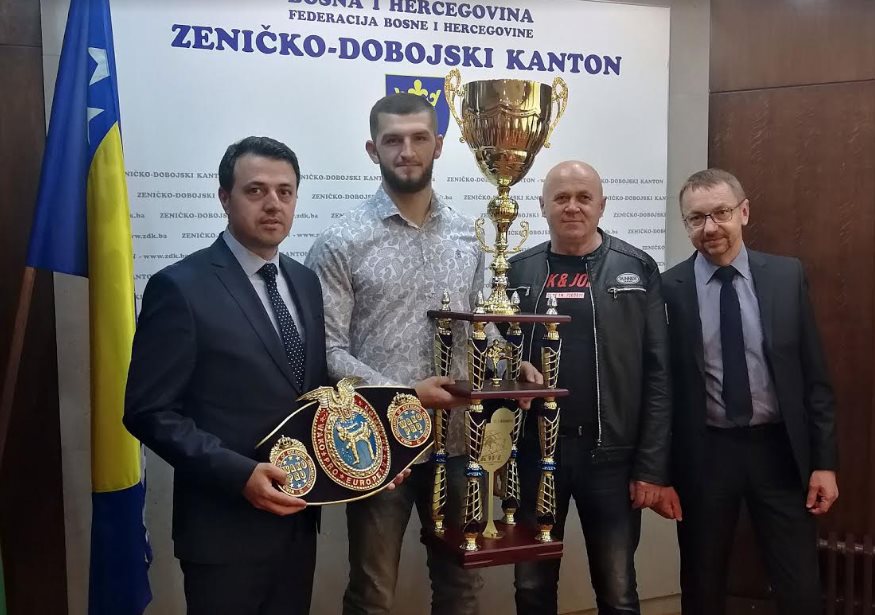 Premijer ZDK Mirza Ganić i ministar za obrazovanje, nauku, kulturu i sport Spahija Kozlić upriličili su prijem za novog kickbox prvaka Evrope Ahmeda Knjića i njegovog trenera Huseina Musu Selimovića iz Kluba borilačkih vještina “Isak” iz Zenice. Krnjić je prošlog vikenda u Sofiji savladao bugarskog borca Dejana Topalskog i tako mu oduzeo titulu evropskog prvaka pri WAKO pro asocijaciji.
