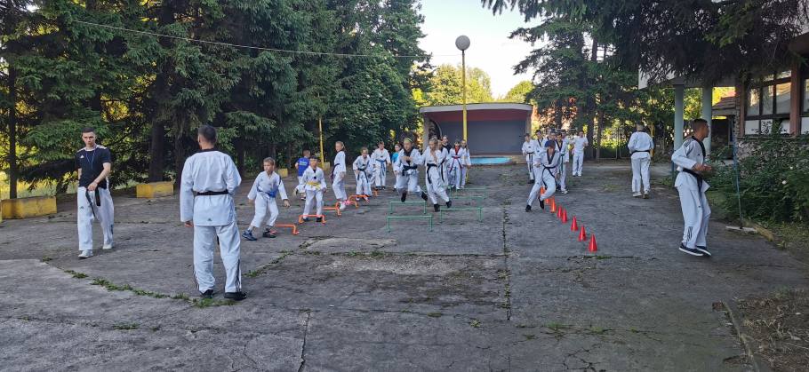 Zagrijavanje smo odradili vani ispred klubskih prostorija a unutra borbene tehnike i borbe.