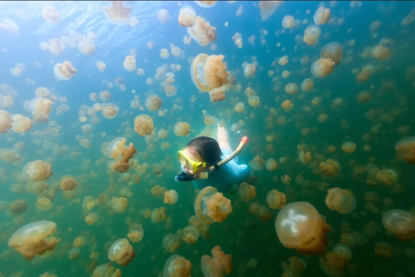 Ovo čarobno jezero puno je meduza i nalazi se na otocima Palau. Sve meduze koje tamo žive prilično su malene pa njihovi ubodi nisu opasni za ljude. Budući da su meduze lijepe životinje, iskustvo je nezaboravno: možete plivati s njima ili ih čak i dodirnuti. Protokol za ulazak je strog. Morate biti sigurni da nemate pijeska na sebi i da niste koristili kremu za sunčanje ili bilo koju drugu supstancu koja bi mogla predstavljati prijetnju osjetljivoj ravnoteži njihovog ekosistema.