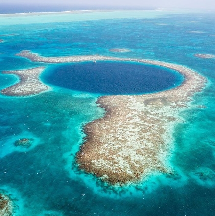 Velika plava rupa smještena je blizu obale Belizea. Duga je 318 m i duboka 124 m. Širom svijeta poznata je kao odredište za ronjenje.