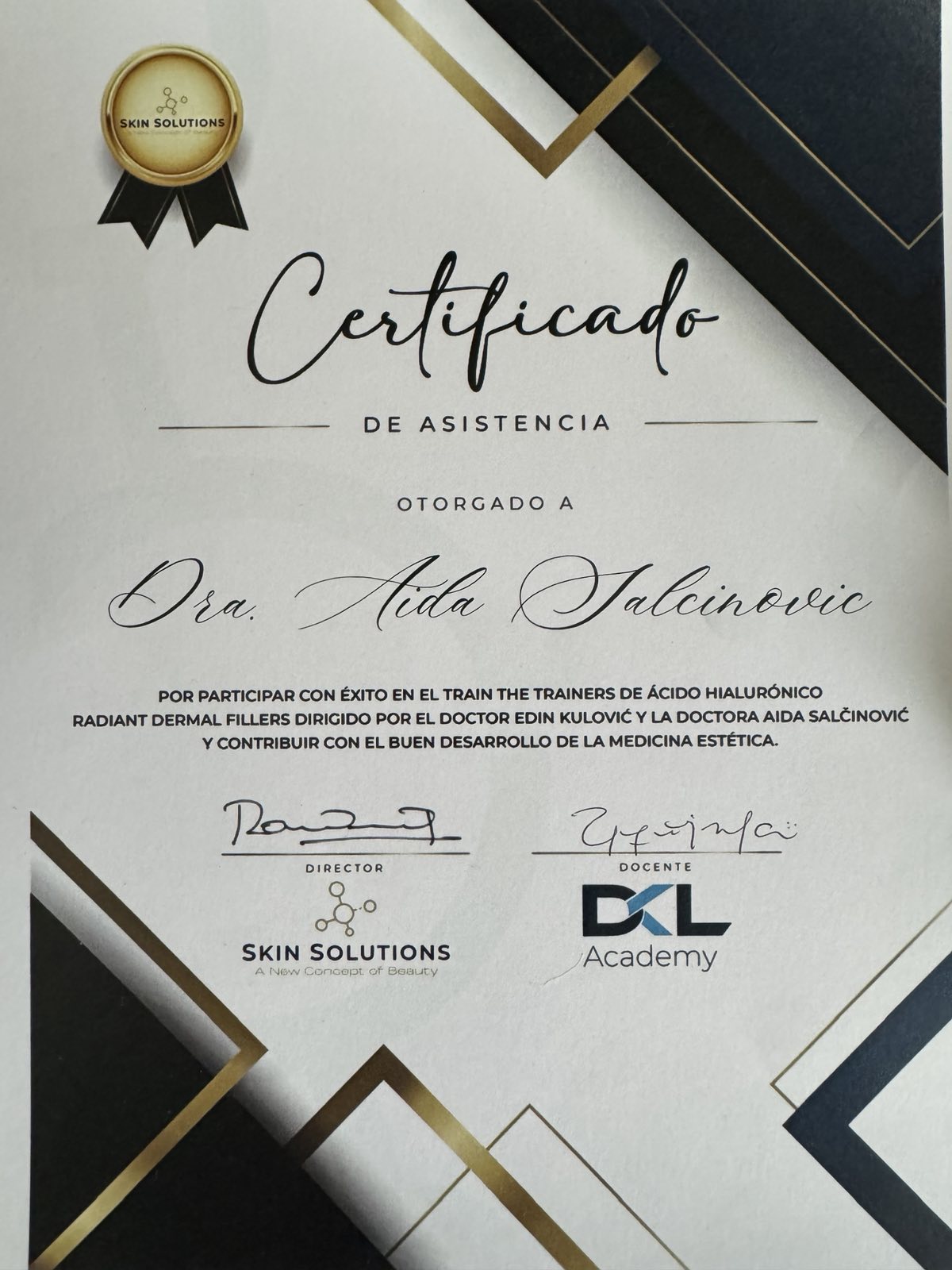 „U svojstvu KOL tima kompanije Radiant zajedno sa kolegom dr. Edinom Kulovićem održali smo osam predavanja i 16 live demo injection prezentacija kojima je prisustvovalo više od 350 ljekara stomatologa, plastičnih hirurga i dermatologa. Edukovali smo trenere za edukaciju filerima ispred DKL Academy“, kaže dr. Aida Salčinović.