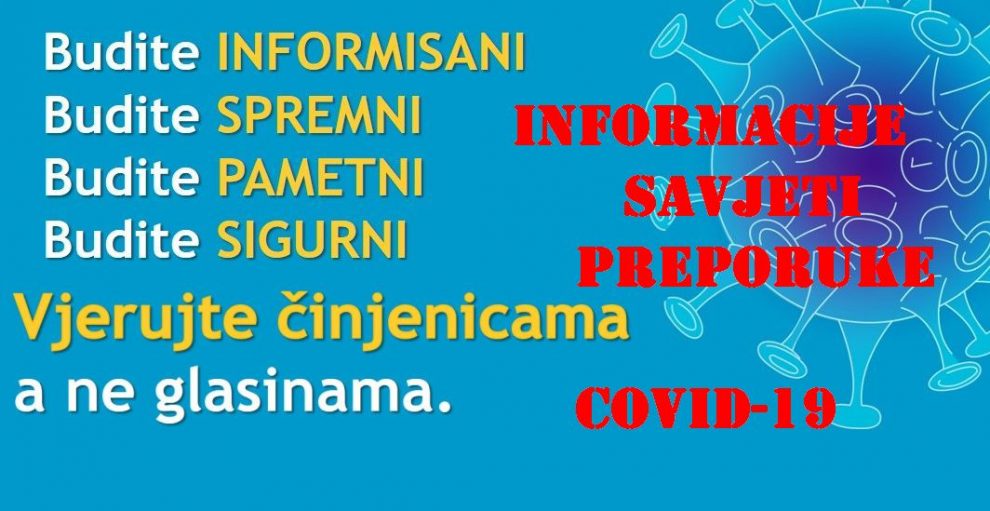 Poštovani građani, bolest uzrokovana virusom Covid-19 je uglavnom blaga, pogotovo za djecu i mlade. Međutim, može izazvati i ozbiljan oblik bolesti. Neke od osoba koje se zaraze trebaju dobiti pomoć u bolnici, navodi se u informaciji Instituta za zdravlje i sigurnost hrane Zenica.