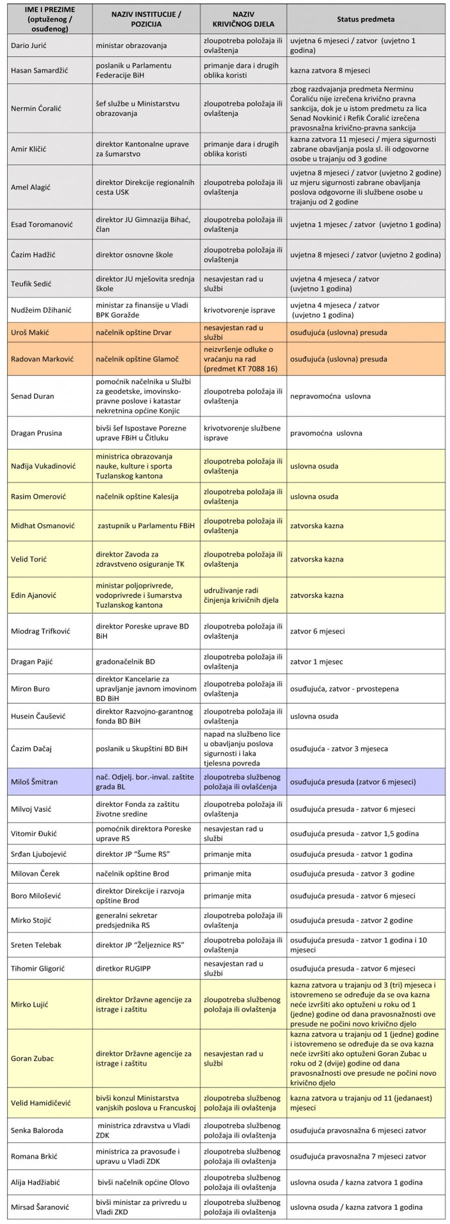 Pročitajte imena najviših funkcionera iz BiH koji su osuđeni u posljednjih pet godina