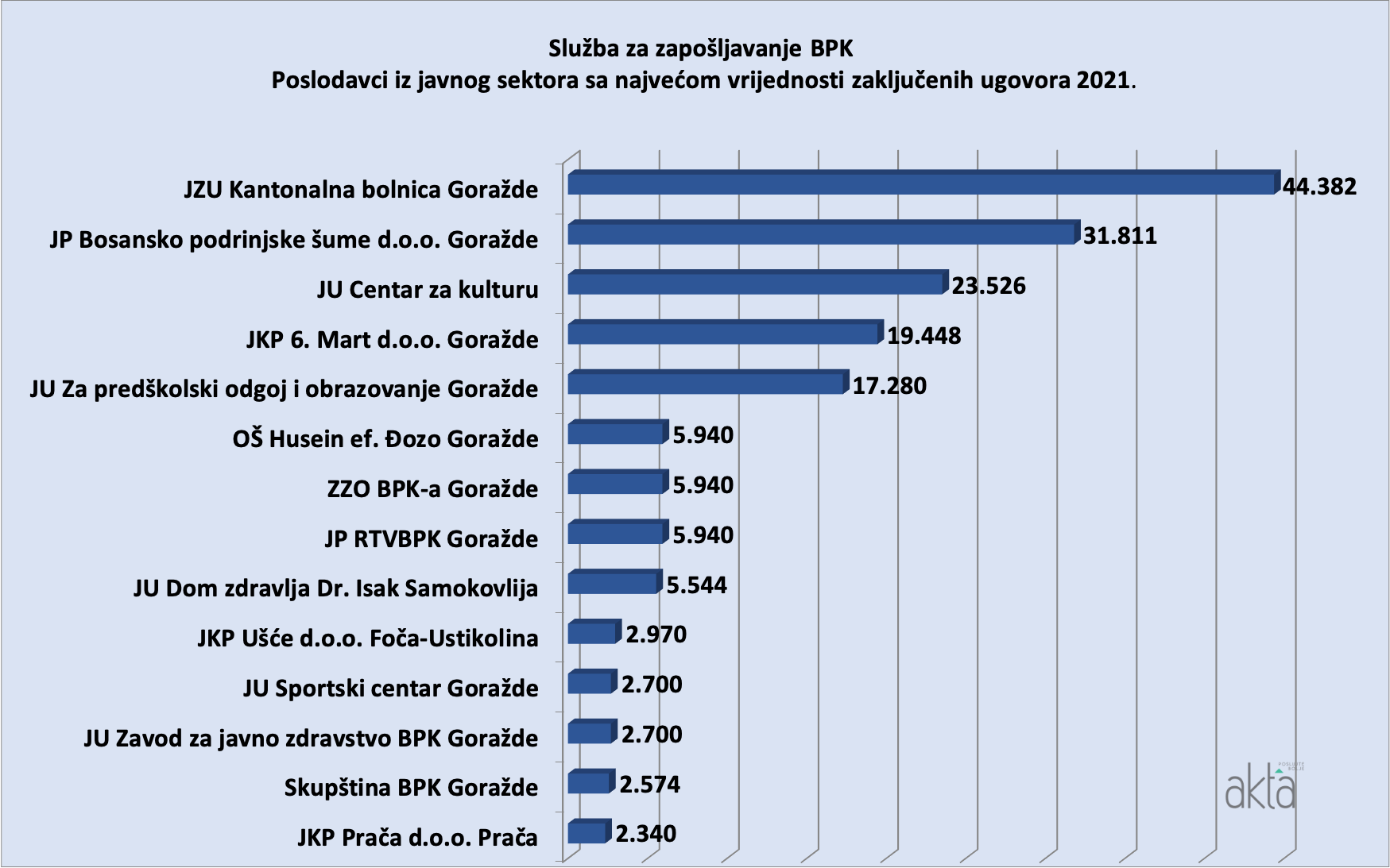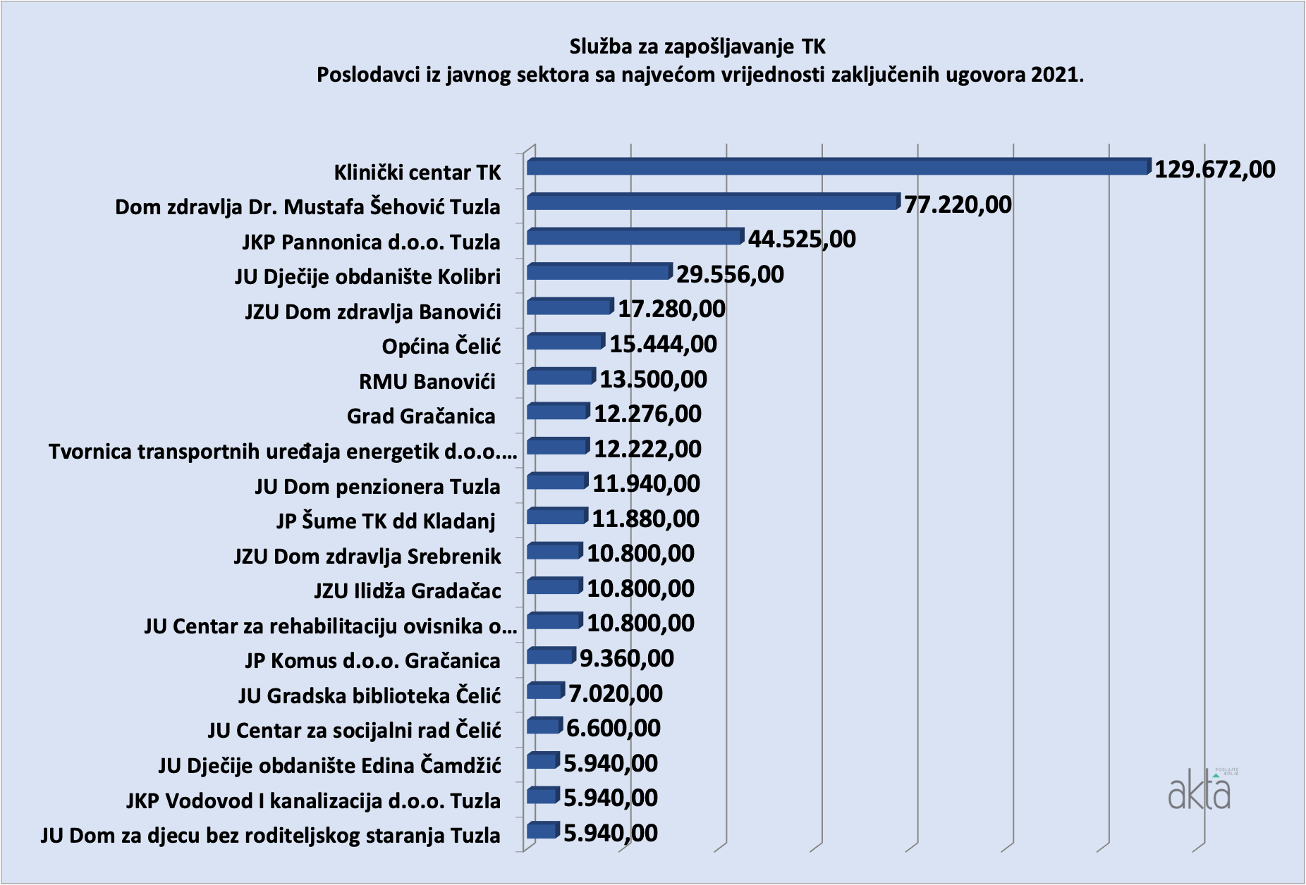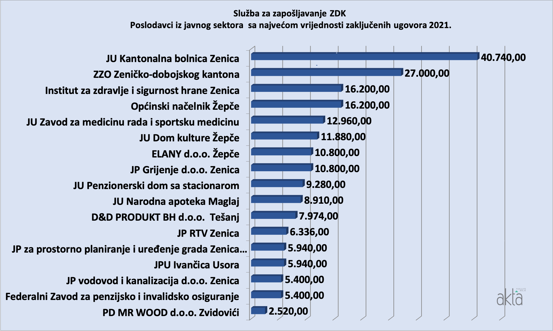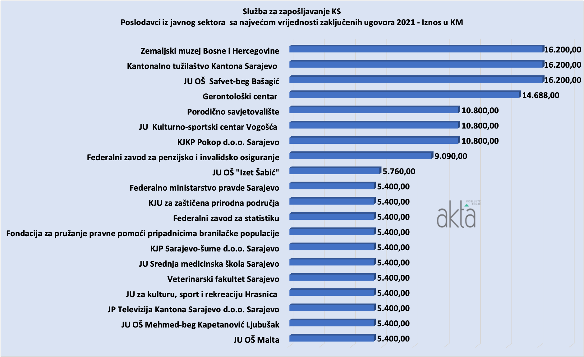 U proteklom periodu poslovni portal Akta.ba je u rubrici Analize objavljivao liste poslodavaca iz privatnog sektora koji su povukli finansijska sredstva iz Programa sufinansiranja zapošljavanja 2021. a koji sprovodi Federalni zavod za zapošljavanje.