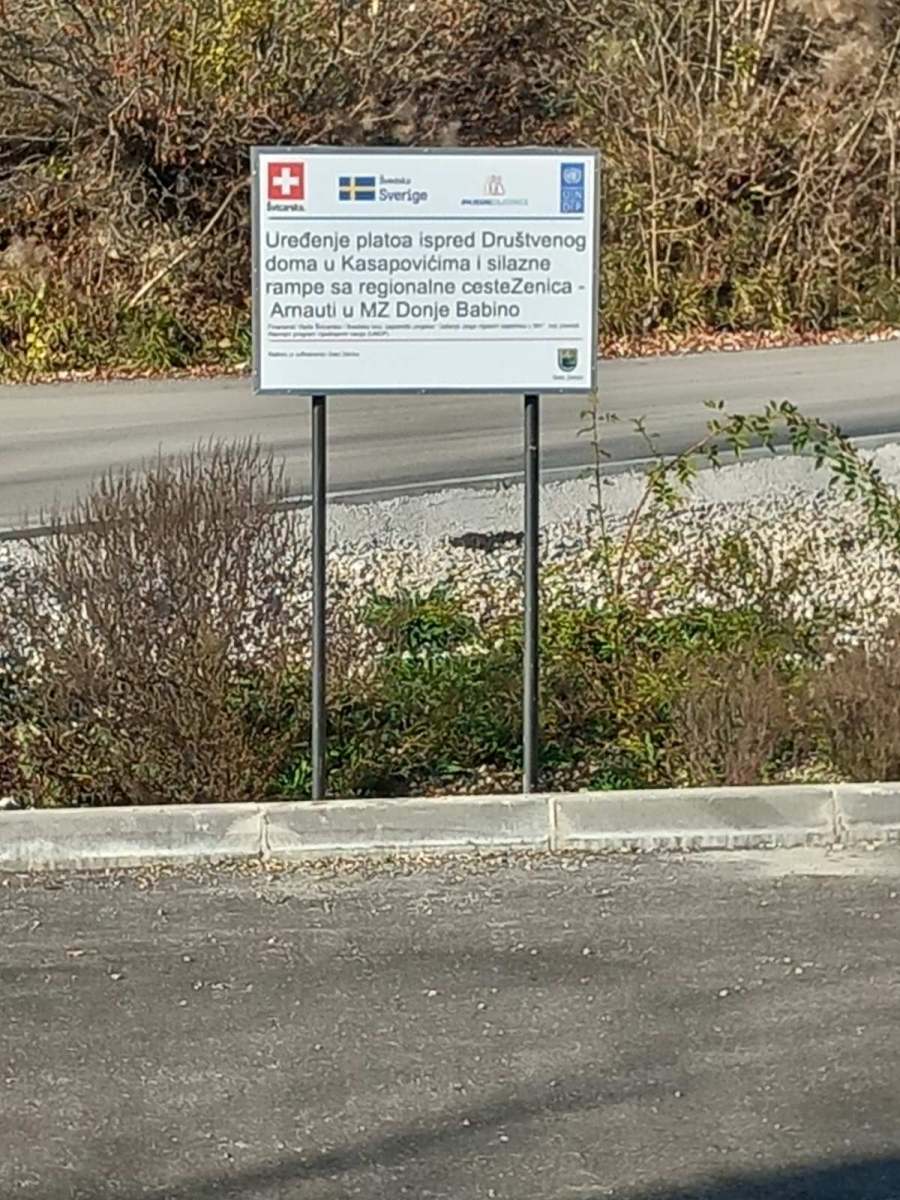 Partnerska mjesna zajednica Donje Babino je nakon realizovanog foruma građana dobila nagradni projekat “Radovi na platou ispred MZ u Kasapovićima I silaznoj rampi sa regionalnog puta Zenica- Arnauti”” čiji radovi završeni krajem 2023. godine. Rezultat projekta lzgrađen pristupni put u dužini od 113,93 m u MZ Donje Babino i asfaltiran plato ispred MZ ukupne površine 798 m2 i postavljena rasvjetna tijela ispred MZ.