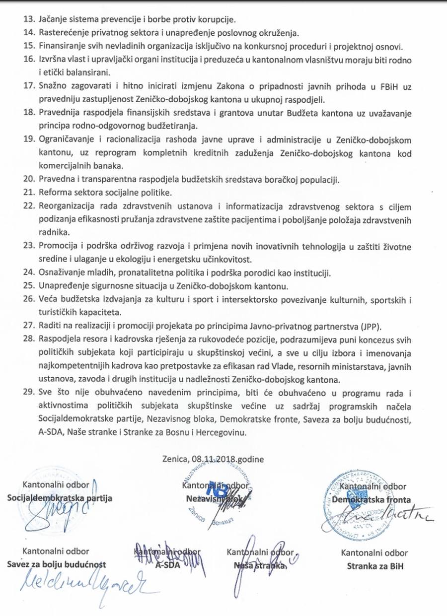 Zenicablog vam donosi izgled dokumenta koji su danas potpisali predstavnici navaedenih stranaka izuzev Stranke za BiH.