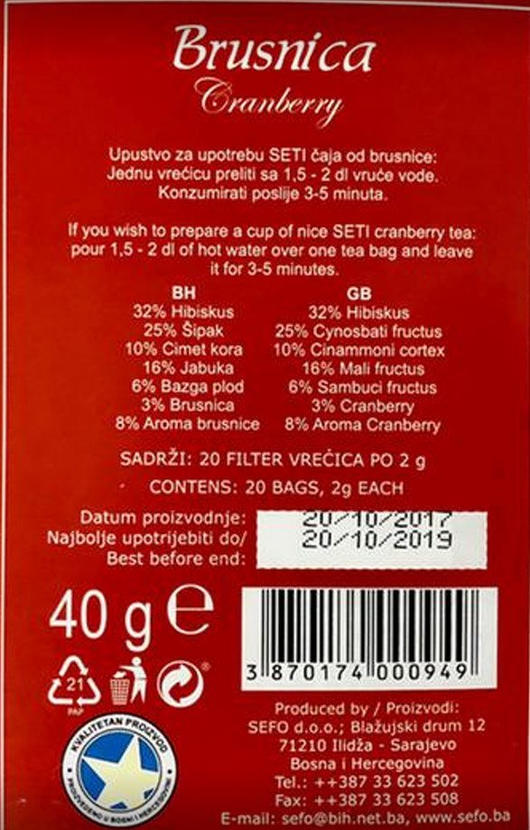 Kada su okrenuli s druge strane i pročitali sastav napisan sitnim slovima, shvatili su da u čaju od brusnice ima najmanje upravo brusnice.