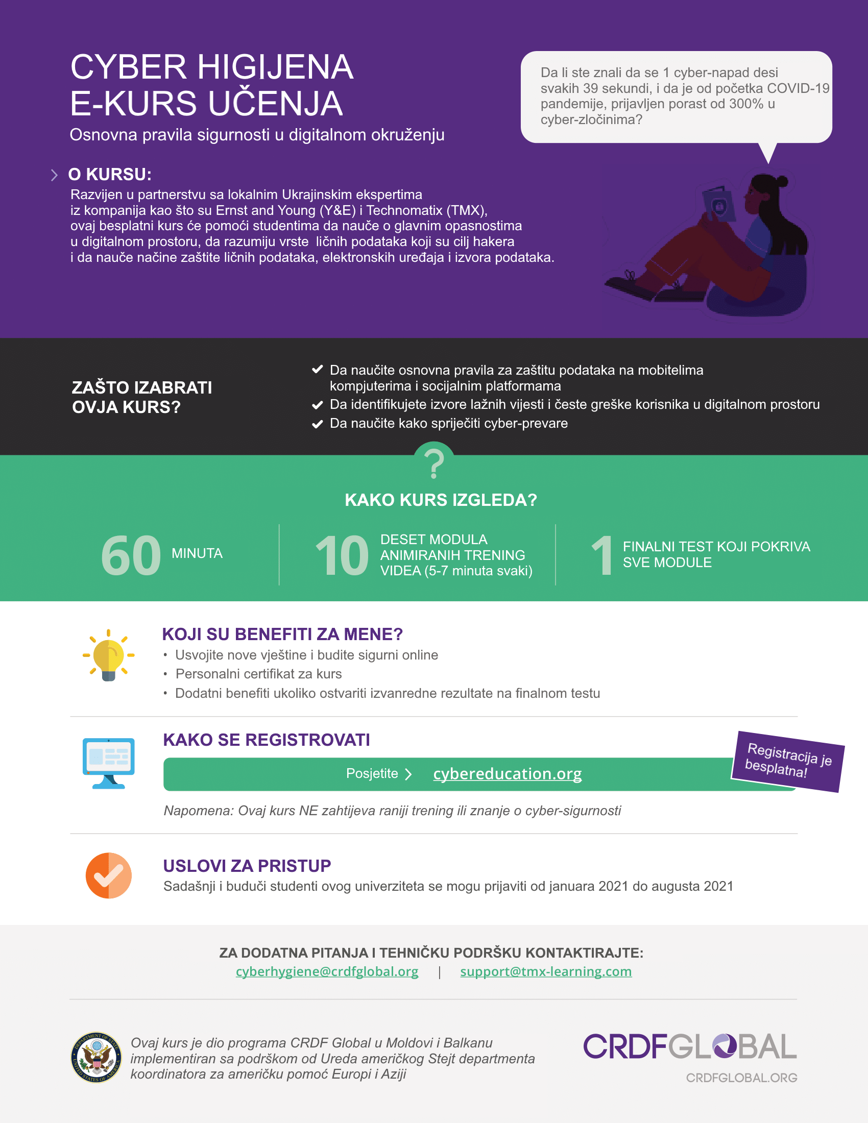 Svi zainteresovani kursu mogu pristupiti putem sljedećeg linka: https://cybereducation.org/mc/index.php/usr/login/login?lang=bs.