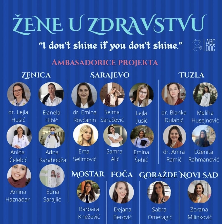 Da u Bosni i Hercegovini mladi imaju mnoštvo ideja, znanja i energije primjer je i projekt „Žene u zdravstvu“ čiji je cilj povezivanja zdravstvenih radnica i studentica zdravstvenih fakulteta te kreiranje mreže uspješnih i ambicioznih žena, a kojeg su osmislile Selma Terzić, doktorica medicine u Hitnoj pomoći i osnivačica platforme ABCDoktori te Anida Čelebić, studentica četvrte godine medicine u Zenici i saradnica na platformi ABCDoktori. U razgovoru ističu da je ideja za projekt „Žene u zdravstvu“ nastala sasvim spontano.