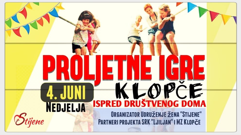 Sportsko-zabavna manifestacija “Proljetne igre Klopče” će se održati u nedjelju, 4. juna, ispred Društvenog doma Klopče na adresi Hadžije Mazića put bb u mjesnoj zajednici Klopče – Zenica.