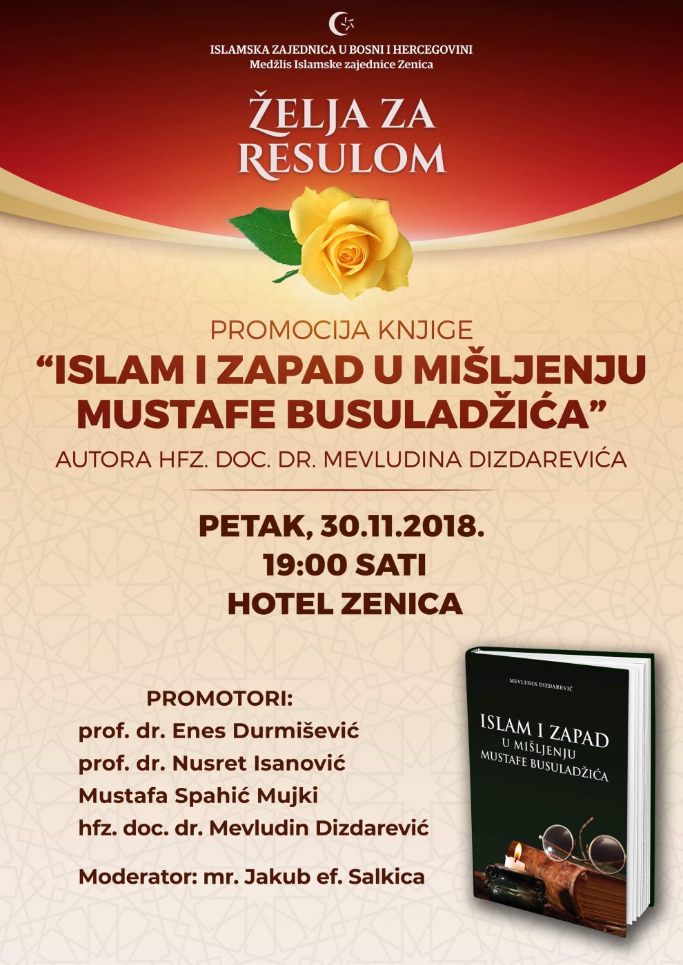 Promocija knjige: Islam i Zapad u mišljenju Mustafe Busuladžića – U sklopu manifestacije Zelja za resulom koju već šesnaest godina organizira Medžlis islamske zajednice Zenica bit će uprilićena promocija jednog značajnog istraživačkog projekta.