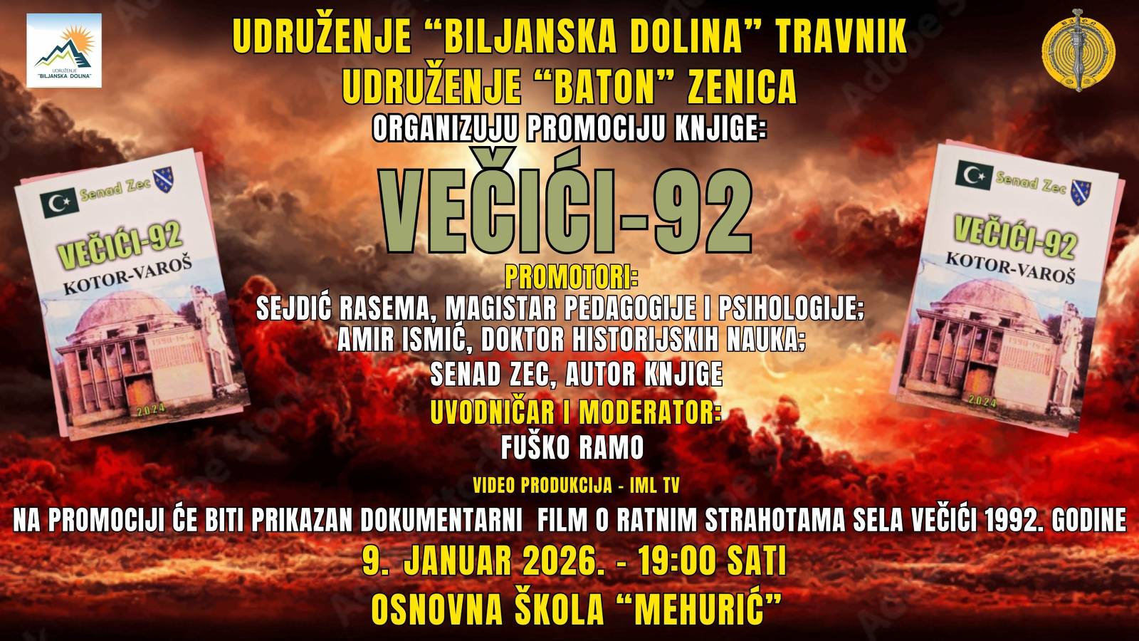 Tako smo i ove godine 9. januara 2026. godine u saradnji sa Udruženjem Biljanska dolina u prepunoj sali Osnovne škole „Mehurić“ održali drugu po redu promociju knjige „Večići-92“, autora Senada Zeca.