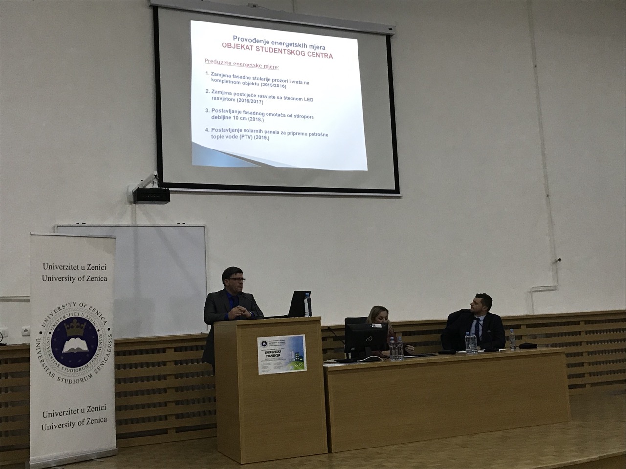 Budući da značajan dio objekata i opreme Univerziteta u Zenici je predmet konkretnih mjera energijske efikasnosti sa osjetnim i vidljivim benefitima, koji su pečat da su načinjeni ispravni koraci u datim vremenima iza nas, a ujedno su i odskočna daska i vjetar u leđa za nove podvige istog energijskog žanra. Važne detalje u vezi tih projekata i pratećih informacija je prezentovao gospodin mr.sc. Dino Eminović u okviru teme «Projekti i mjere energijske efikasnosti na Univerzitetu u Zenici». Dino Eminović je diplomirani inženjer mašinstva i ovlašteno je stručno lice iz oblasti energijske efikasnosti pri Federalnom ministarstvu prostornog uređenja, član je Centra za energetsku efikasnost i obnaša funkciju direktora Studentskog centra Univerziteta u Zenici u drugom mandatu.