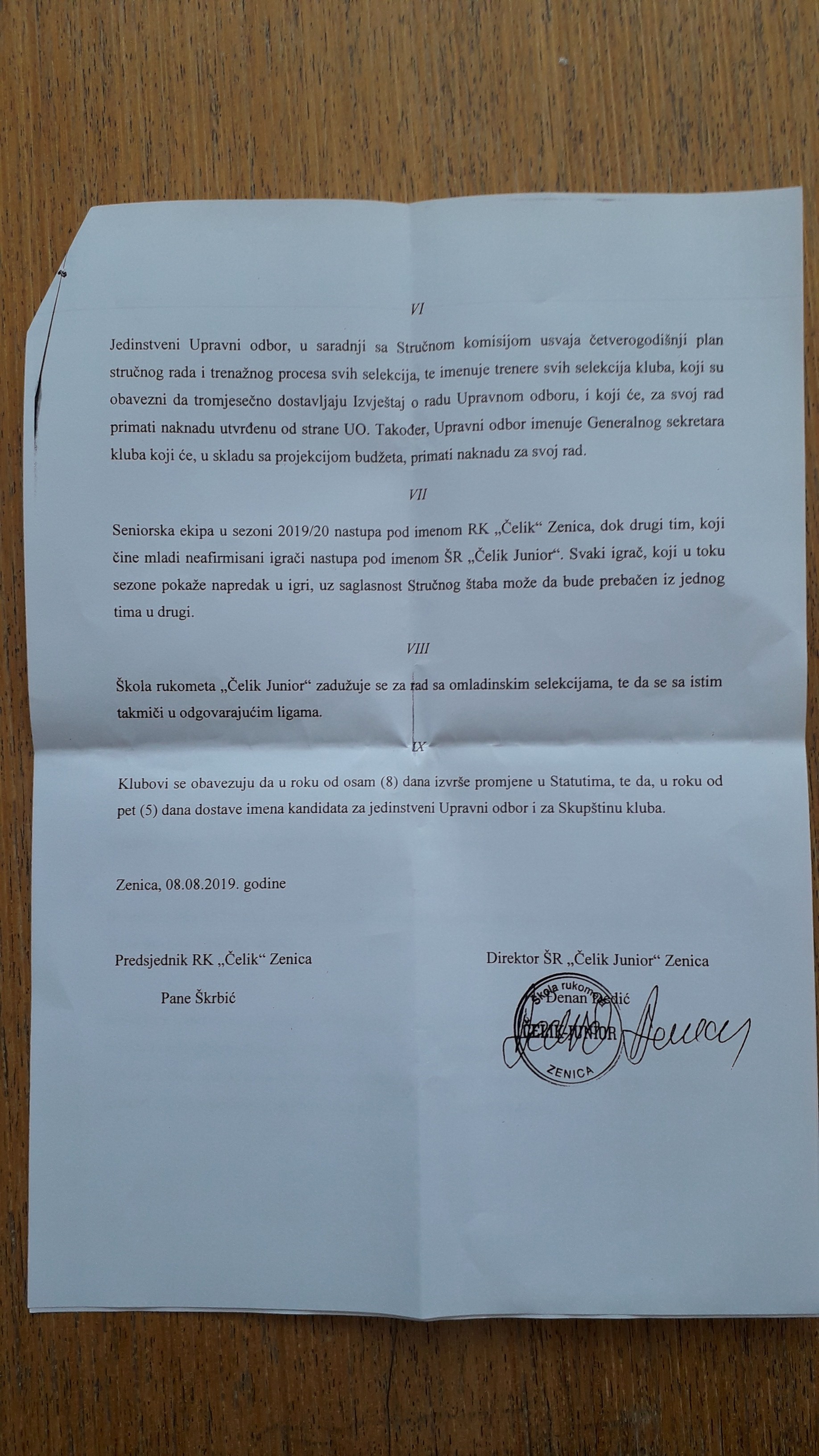 – Na inicijativu Gradske uprave sjeli smo i razgovarali o ponovnom ujedinjenju. Mjesec dana trajali su ti pregovori, donijeli smo i neke zaključke, ali na dan potpisivanja sporazuma, predsjednik RK Čelik, Pane Škrbić odustao je od sporazuma, tako da ćemo i naredne sezone imati dva kluba u istoj ligi. Moram istaći da su svi iz RK Čelik, sem predsjednika, bili veoma korektni u pregovorima i oni su imali ista razmišljanja kao i naš klub. Mi smo bili za potpis, predsjednik Čelika nije htio i eto treći put su propali dogovori i zbog toga nam je žao. Kada je u pitanju ekipa, manje više ostala je ista, okrenut ćemo se radu i vjerujemo da možemo biti bolji nego prošle sezone -, rekao je, pored ostalog, Dedić, direktor kluba.