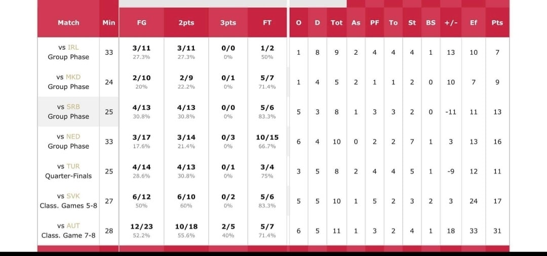 3 puta double-double učinak od 7 utakmica i od strane FIBA nominovana za MVP prvenstva. Fasciniralo me da jedna djevojka u toj dobi bude najbolji strijelac, najbolji skakač, napravi najviše blokada i bude najbolja po efikasnosti u našoj reprezentaciji. Ne sjecam se ni da sam ja imala tu dominaciju u tim godinama.