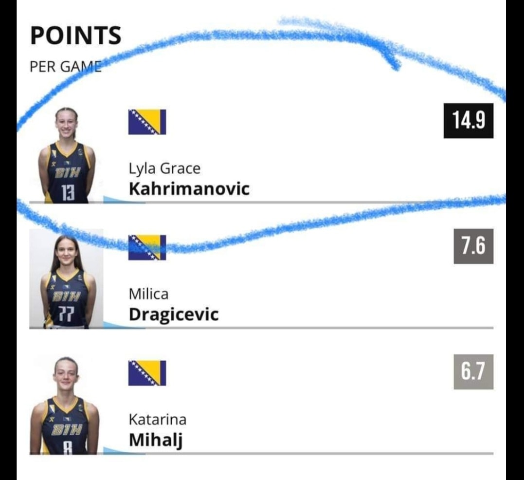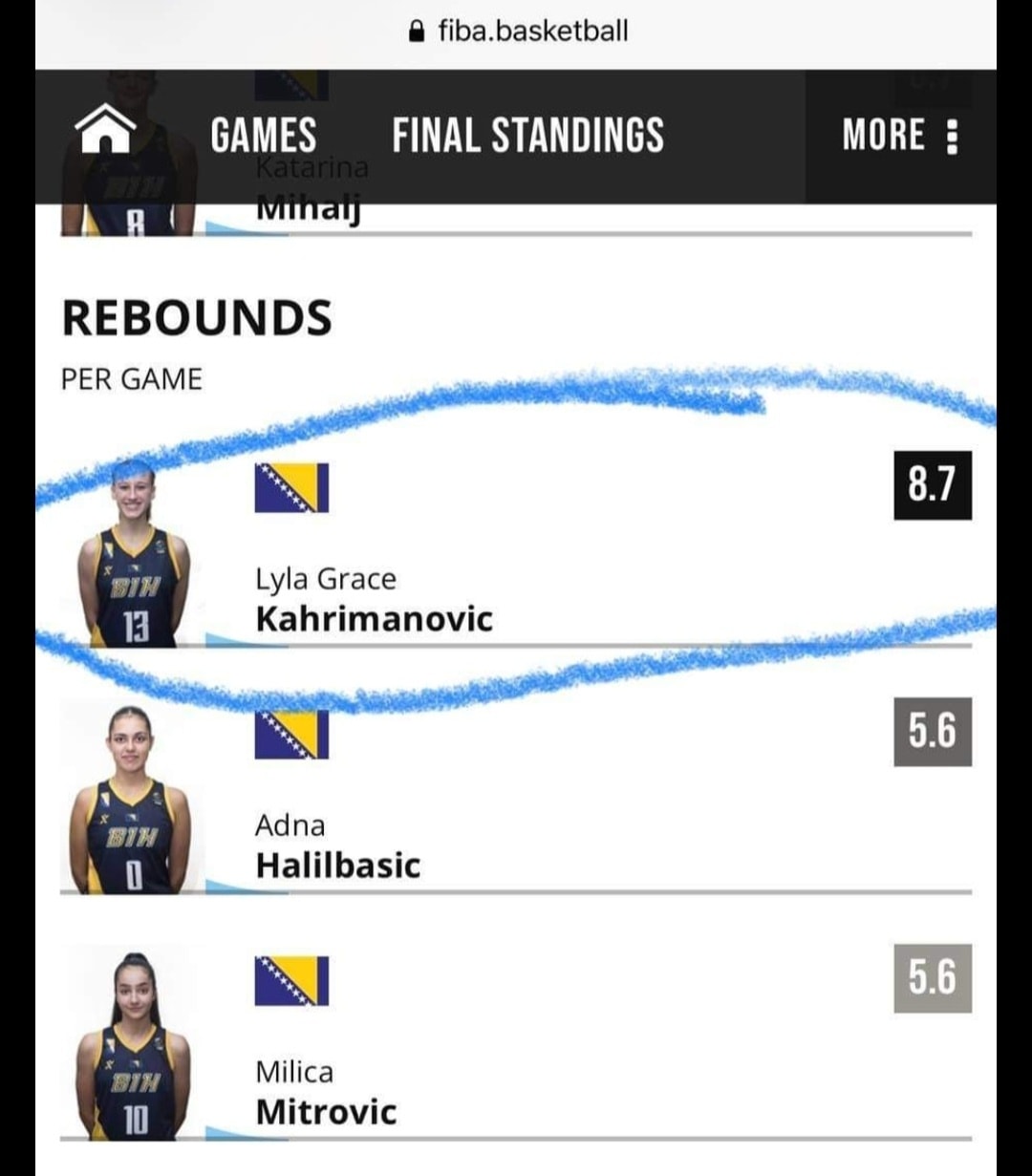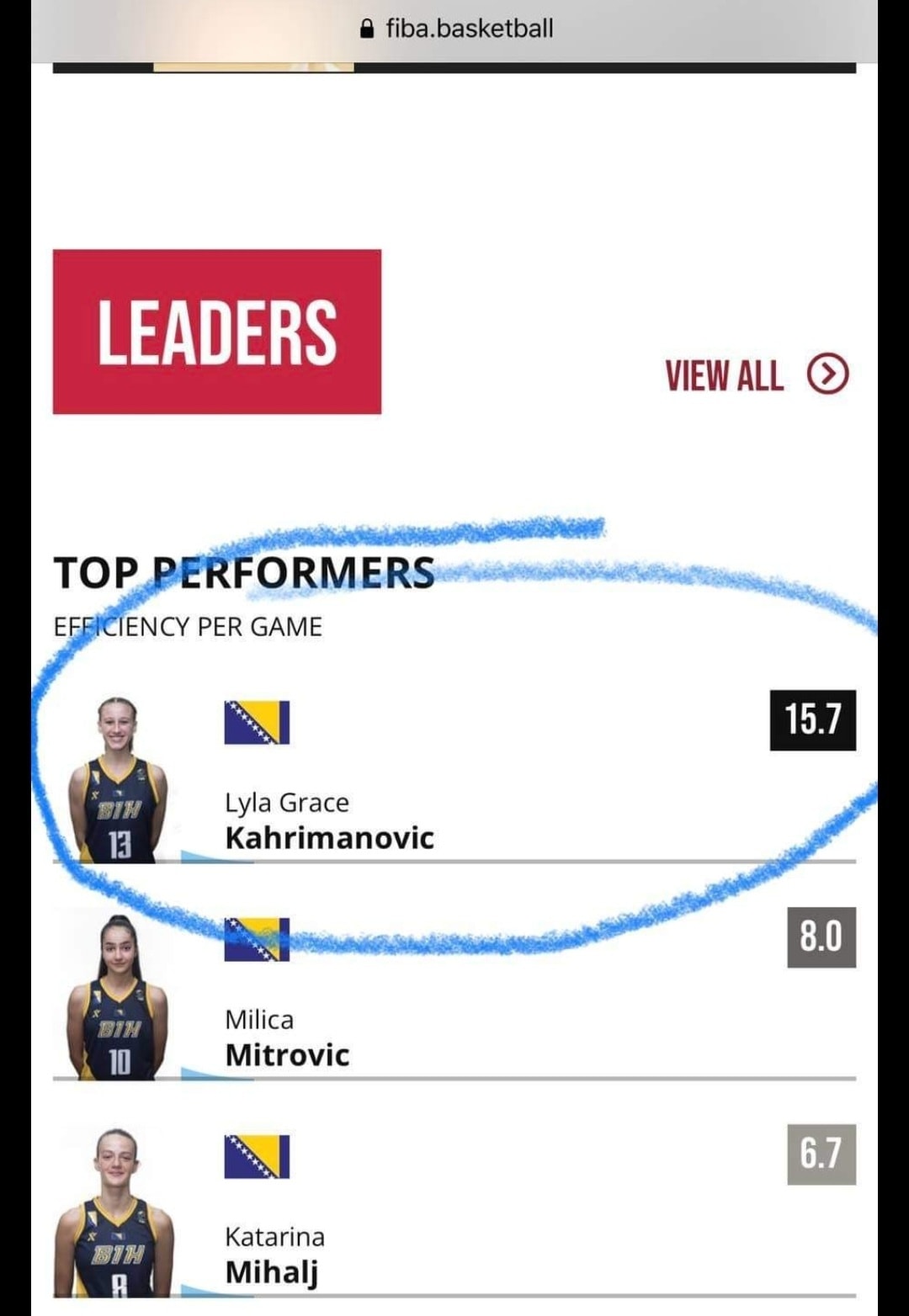 -U16 selekcija je imala i svoje blistave momente. Nakon pažljivo pregledanih svih utakmica, zadovoljno sam trljala ruke. Lyla Grace Kahrimanović po svim statistikama i parametrima se istakla u našem timu i smatram da je to dragulj koji moramo njegovati.