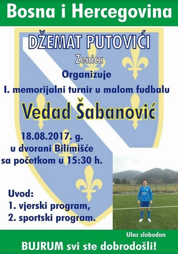 Organizatori su pozvali sv sugrađane da u petak, 18.avgusta dođu u dvoranu Bilmišće od 15,30 sati i svojim prisustvom uveličaju Prvi memorijalni malonogometni turnir „Vedad Šabanović“. Ulaz za sve posjetioce je slobodan.