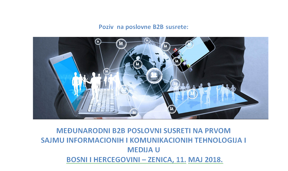 Prvi Sajam informacionih i komunikacionih tehnologija i medija „CYBER EXPOZE“ – U Zenici će se od 11-13. maja 2018. godine održati prvi Sajam informacionih i komunikacionih tehnologija i medija. Sajam će se održati u Areni „Husein Smajlović“, pod visokim pokroviteljstvom Vijeća Ministara, predsjedavajući gospodin Denis Zvizdić, Ministarstva prometa i komunikacija Bosne i Hercegovine, ministar Ismir Jusko i Ministarstva trgovine, turizma i telekomunikacija Republike Srbije, ministar Rasim Ljajić.