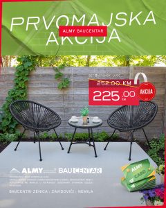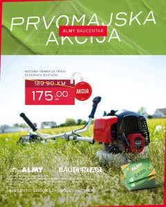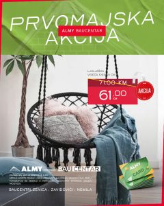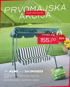 ℹ️Prvomajska akcija kompanije Almy. Određeni artikli dostupni su u svim, a neki samo u pojedinim Almy Baucentrima. Cijene su izražene u KM. Fotografije ne moraju u potpunosti odgovarati stvarnom izgledu proizvoda.