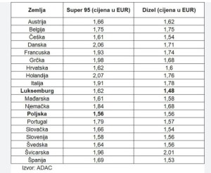 Ako putujte poslovno ili privatno na odmor u inostranstvo, vrijedi unaprijed planirati mjesta, pa čak i države ukoliko se nalaze na vašoj mapi putovanja gdje bi mogli uštedjeti na putnim troškovima. Kako tvrde Nijemci, benzin je najpovoljniji u Poljskoj, a dizel u Luksemburgu.