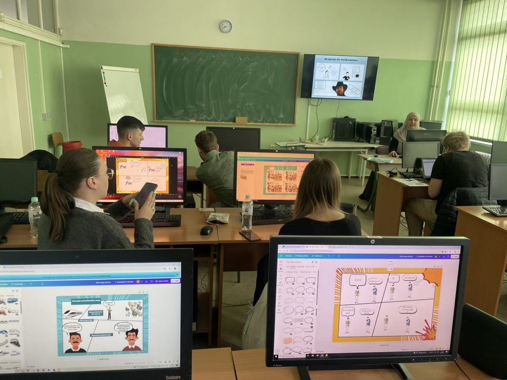 Radionicu su vodili asistentica Edina Kadrić Durmiš i asistent Vehid Kurtić, a tokom zanimljivih sat i po, studenti su se upoznali s osnovama rada u Canvi, istražili predloške, ali i kreirali vlastite stripove koristeći matematičke pojmove i primjere. Radionica je bila i prilika da se upoznaju sa stripom kao pedagoškim alatom koji može igrati značajnu ulogu u nastavi.