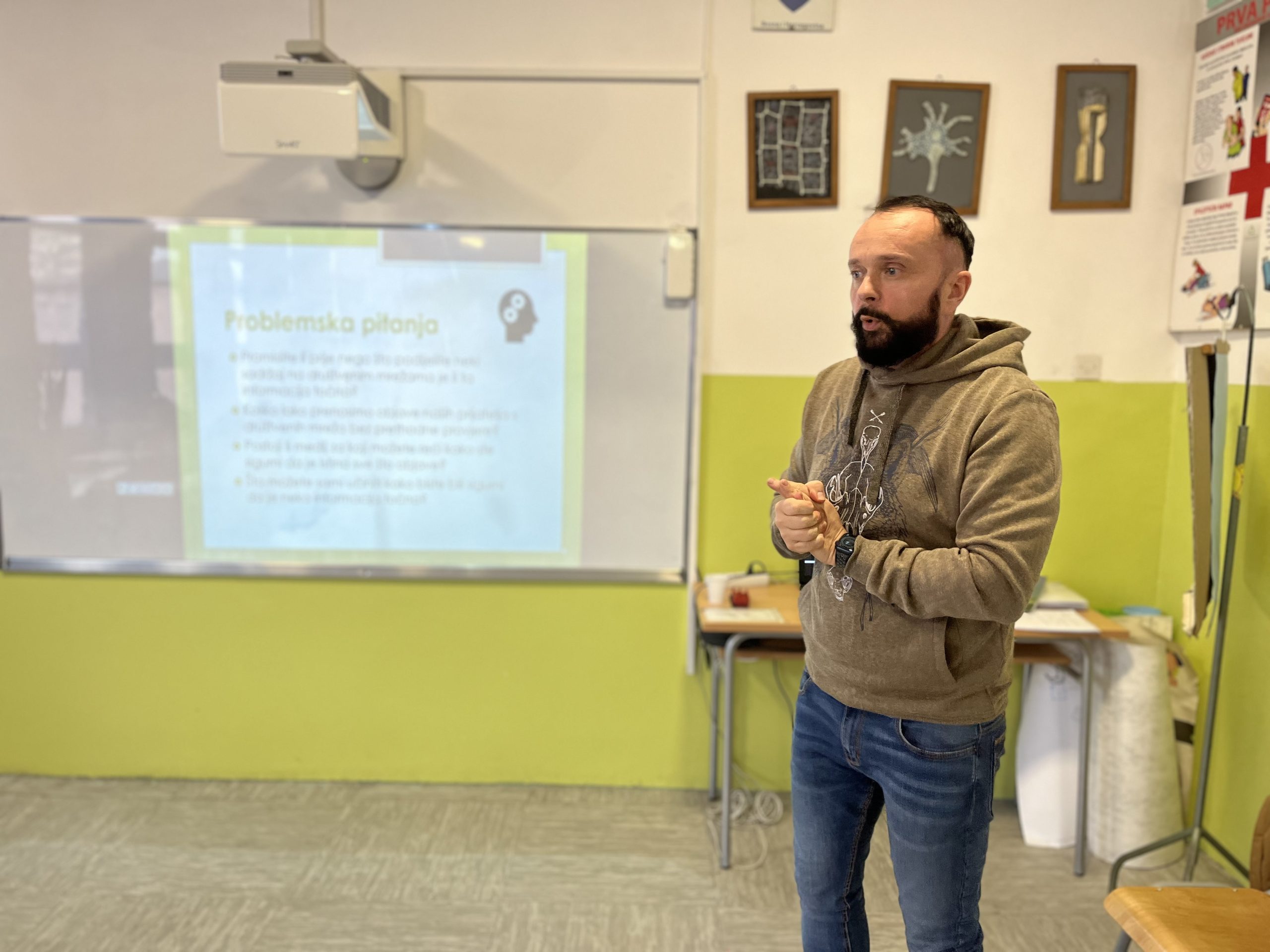 Trener današnje radionice bio je Armin Šestić, stručnjak za medijsku pismenost. Osnovcima je poručio da uvijek trebaju razmisliti o sadržaju koji dijele da li će povrijediti nekoga.