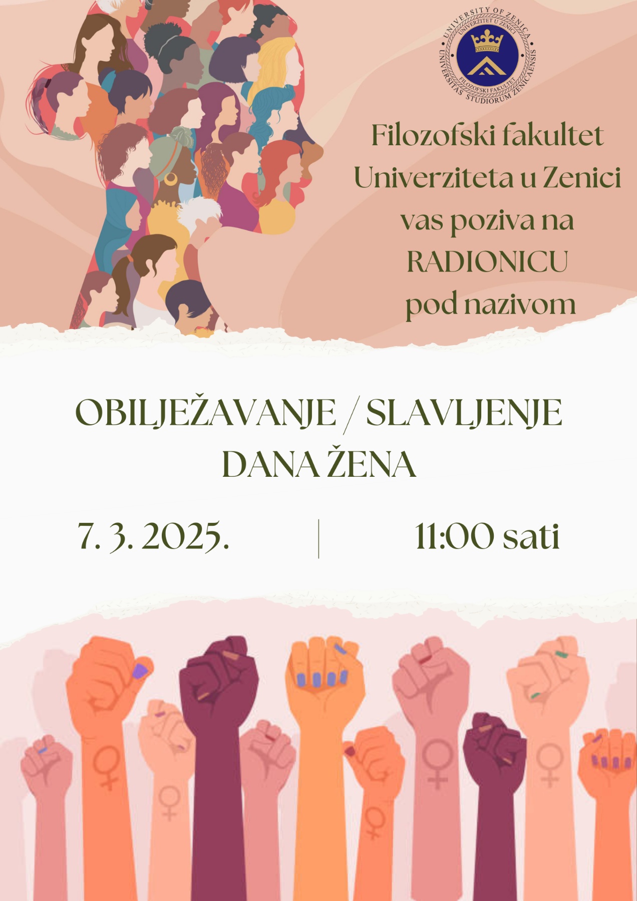 “Radionicu organiziramo povodom 8. marta i želimo pokazati šta je 8.mart značio ženama koje su se borile za pravo glasa i za vidljivost žena u javnom prostoru, te u šta se ovaj praznik, ženskih prava i revolucionarne borbe Clare Zetkin, danas pretvorio. Jedan od važnih aspekata koji želimo razmotriti vezan je za strereotipne poruke koje se ženama šalju ovog dana, a također želimo problematizirati i način na koji se ovaj dan slavi/obilježava u BiH” istakli su sa Filozofskog fakulteta Zenica.