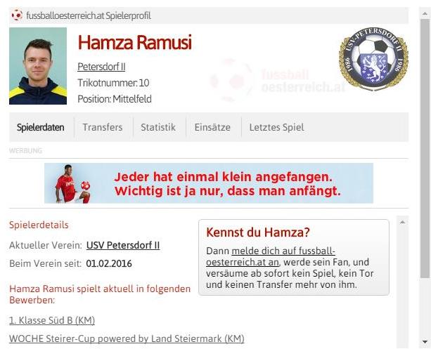 Nakon poziva odlazi u FC Lankowitz čiji je donedavni igrač, da bi tokom ove godine  ScreenShot001 igrao za PETERSDORF II, koji se takmiči u Prvoj Klasi jug B.