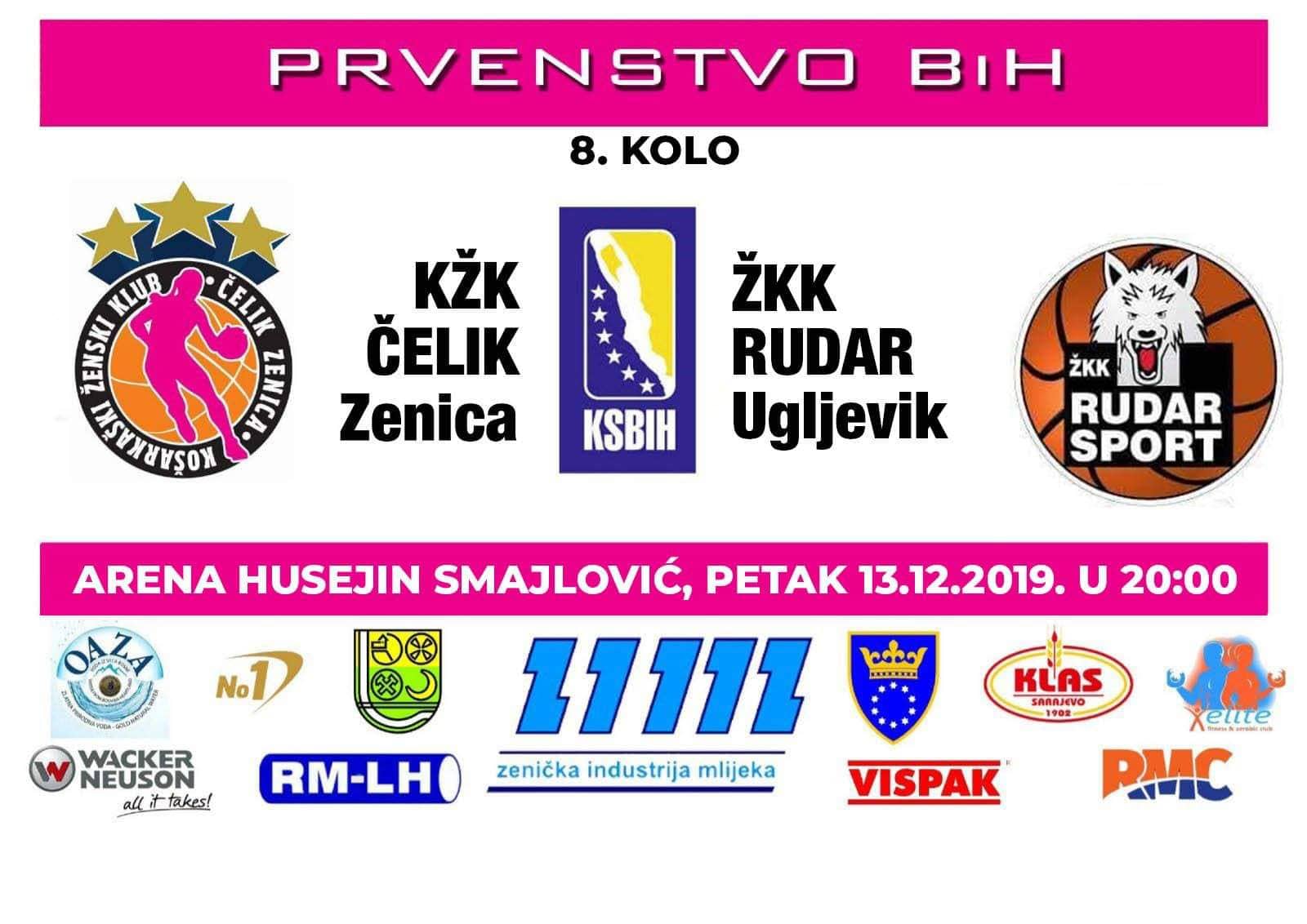 Ovog petka, 13.decembra košarkašice zeničkog kluba KŽK Čelik su domaćini ekipi ŽKK Rudar Sport iz Ugljevika u najvišem rangu ženske bh. košarke, uokviru osmog kola. Utakmica je na rasporedu u 20 sati u gradskoj Areni „Husejin Smajlović“ u Zenici, „C“ teren, ulaz slobodan.