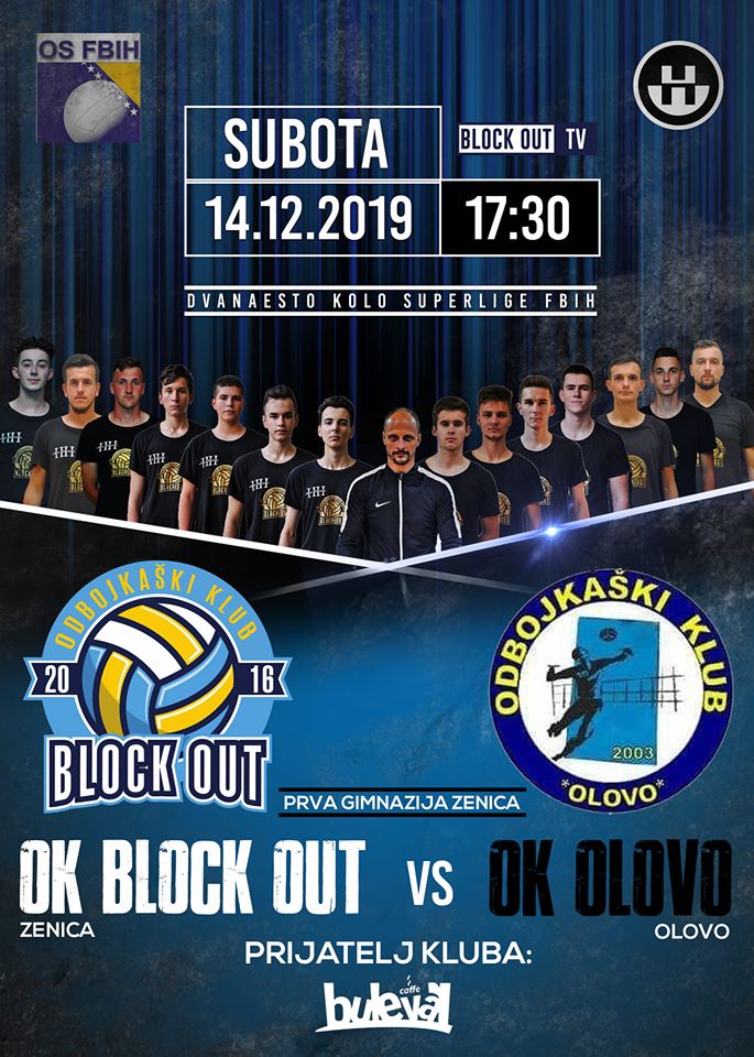 Ove subote 14.decembra odbojkaši OK Block Out su domaćini OK Olovo, lideru na tabeli, uokviru 12. kola Superlige FBiH, grupa Jug. Meč se u 17,30 sati u sali Prve Gimnazije u Zenici, ulaz slobodan.