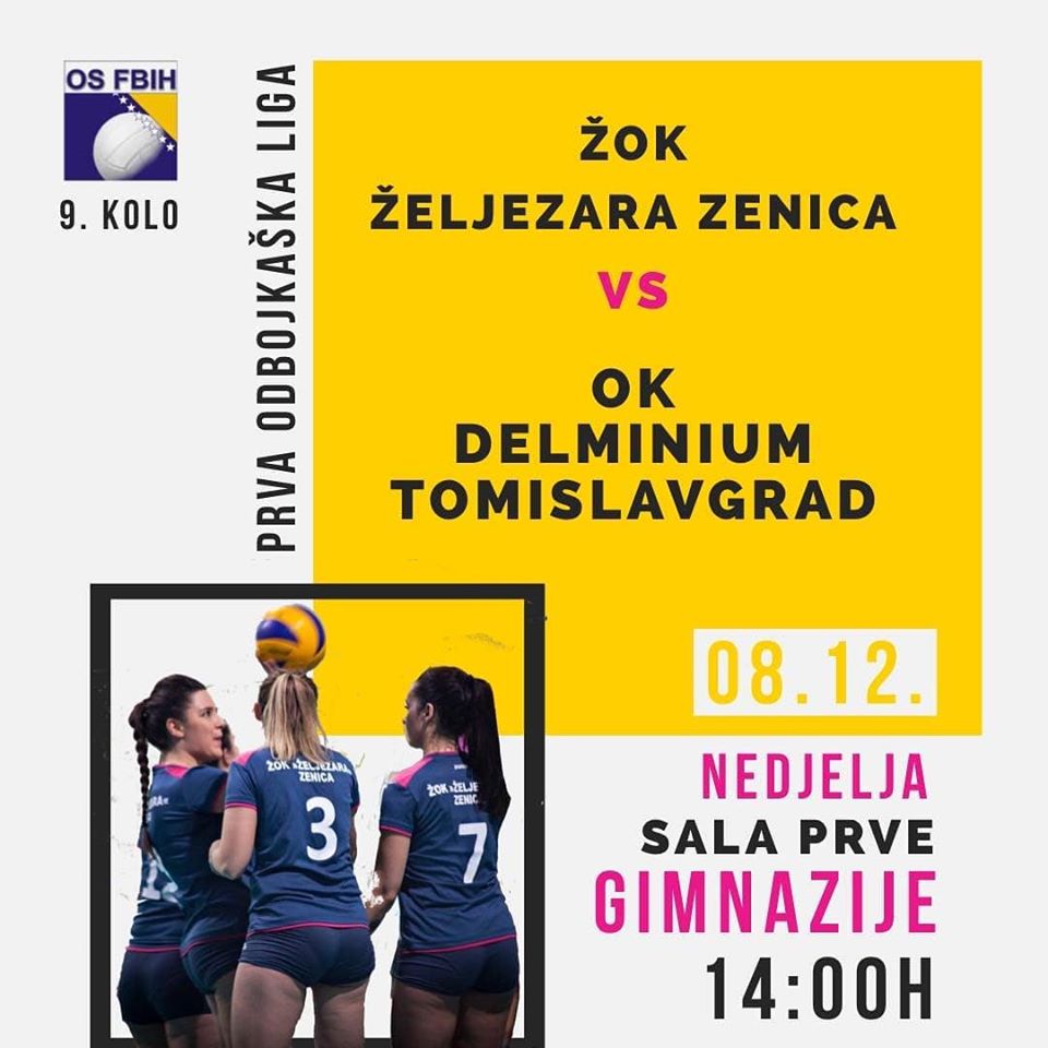 U nedjelju 08.12.2019.godine u 14:00 sati odbojkašice ŽOK Željezara dočekuju ekipu OK „Delminium“ iz Tomislavgrada. Ova utakmica se igra u sali Prve gimnazije u Zenici, Prva ženska Federalna liga, A2.