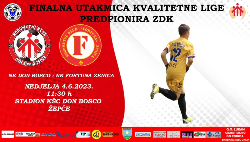 11,30 sati, Žepče: NK Don Bosco – NK Fortuna (Finale završnice Kvalitetne lige predpionira NSZDK 22/23, revanš utakmica, stad.KŠC „Don Bosco“ Žepče); U prvoj utakmici u Zenici bilo je 2:1 za Fortunu.