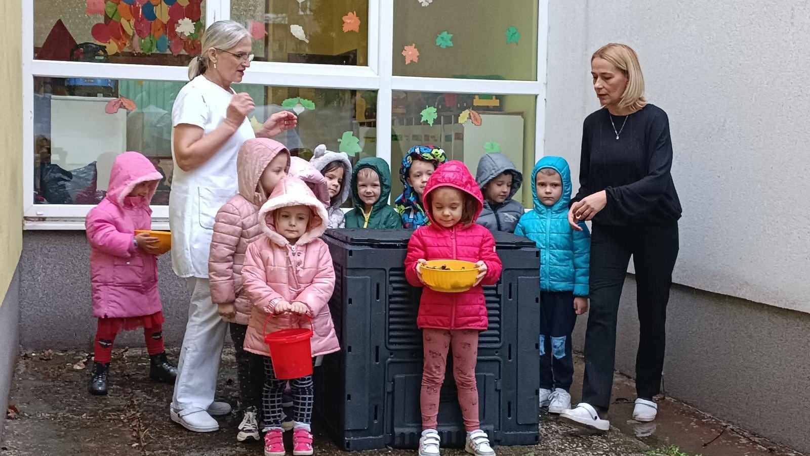 Školama i obdaništu dopremljeni su komposteri u kojima će se slagati bio otpad, osoblje ovih ustanova preuzelo je obavezu uvođenja sistema sortiranja bio razgradivih otpadaka od hrane i aktivnosti u ovim prostorima, a djeca su naučila da su i sama u službi obnove života u svom prirodnom okruženju, kroz odvajanje i pripremu ostataka užine za proces stvaranja hrane za biljke.