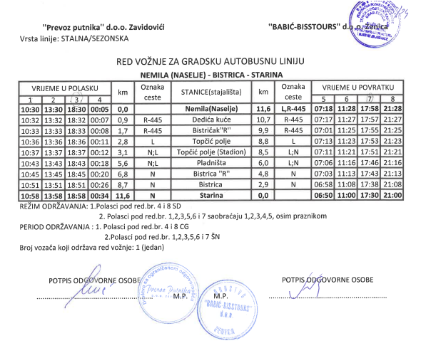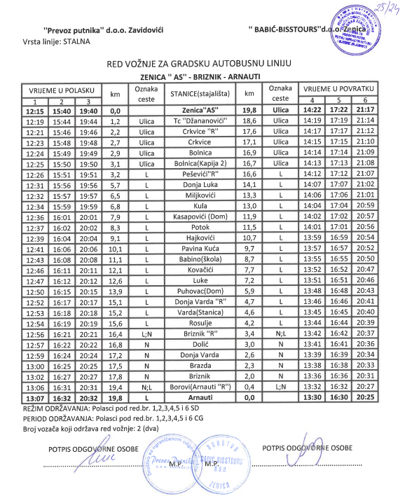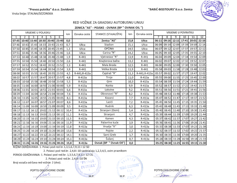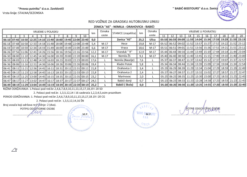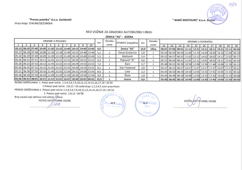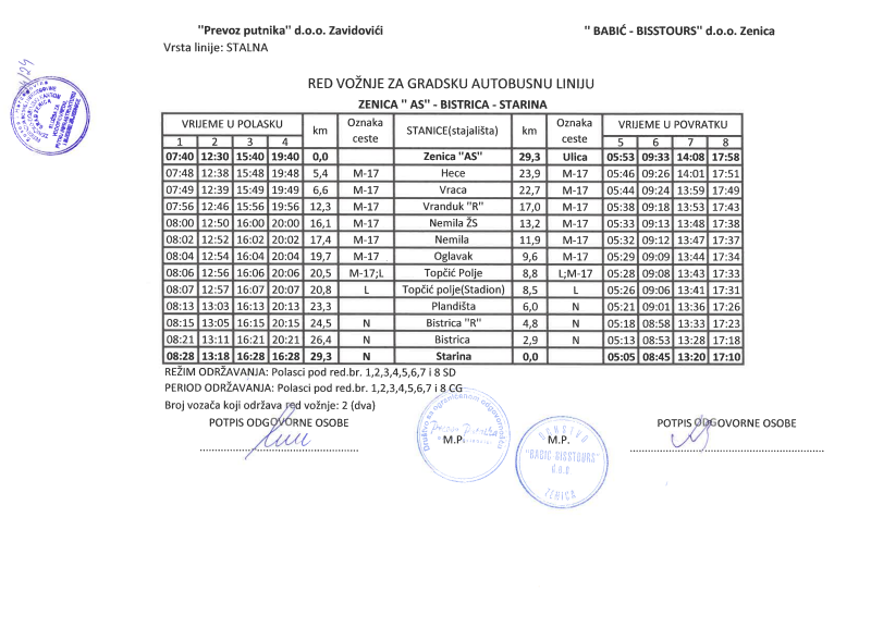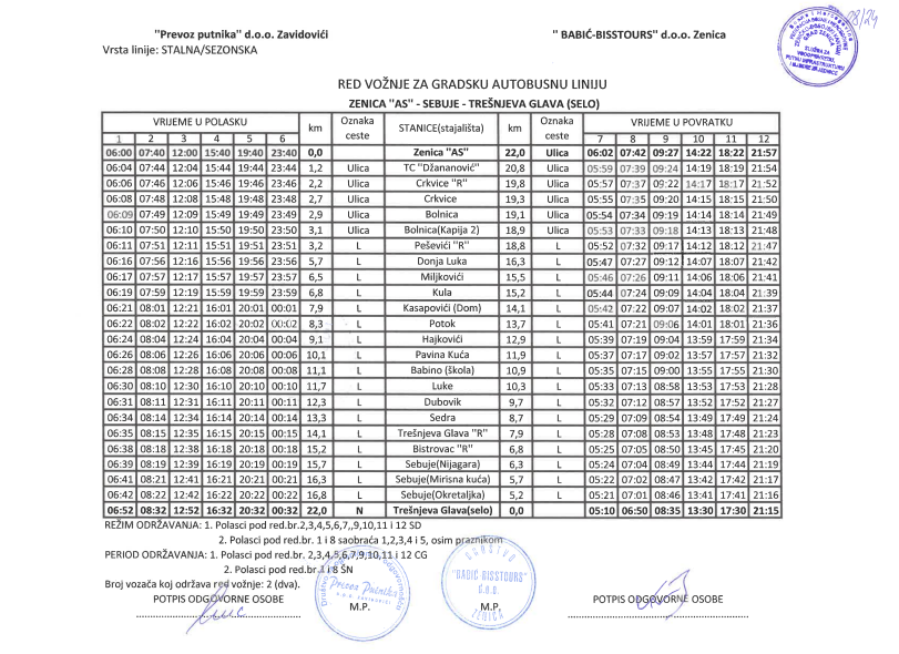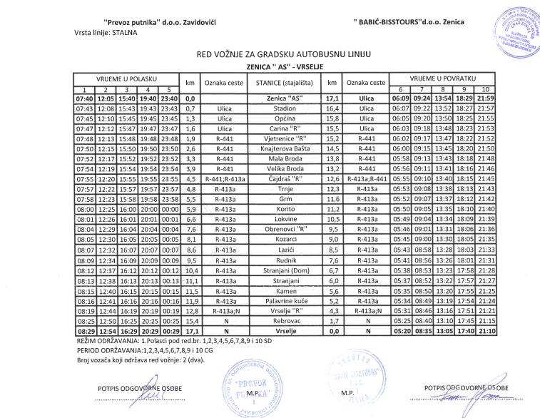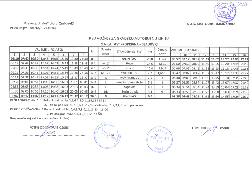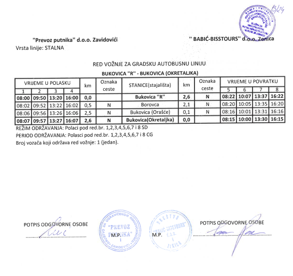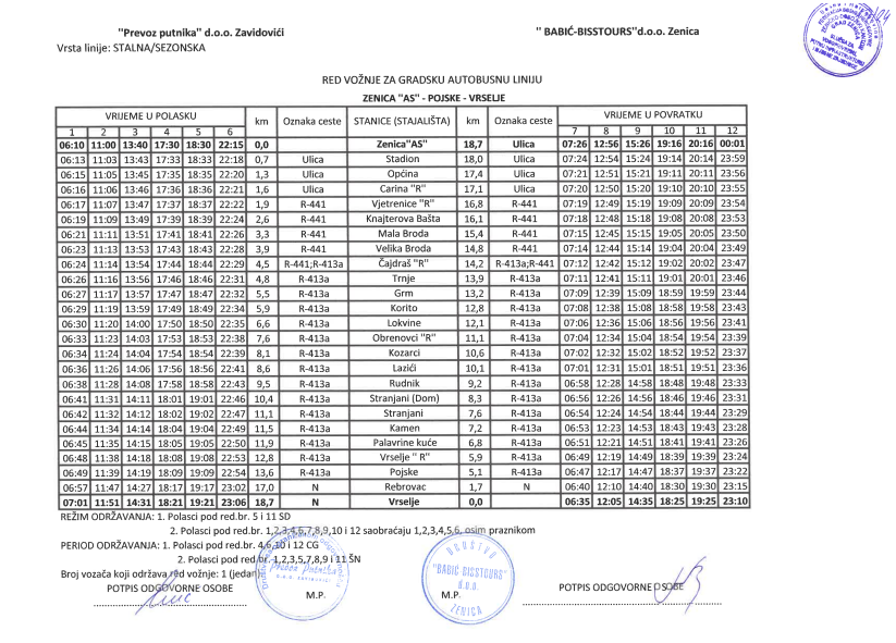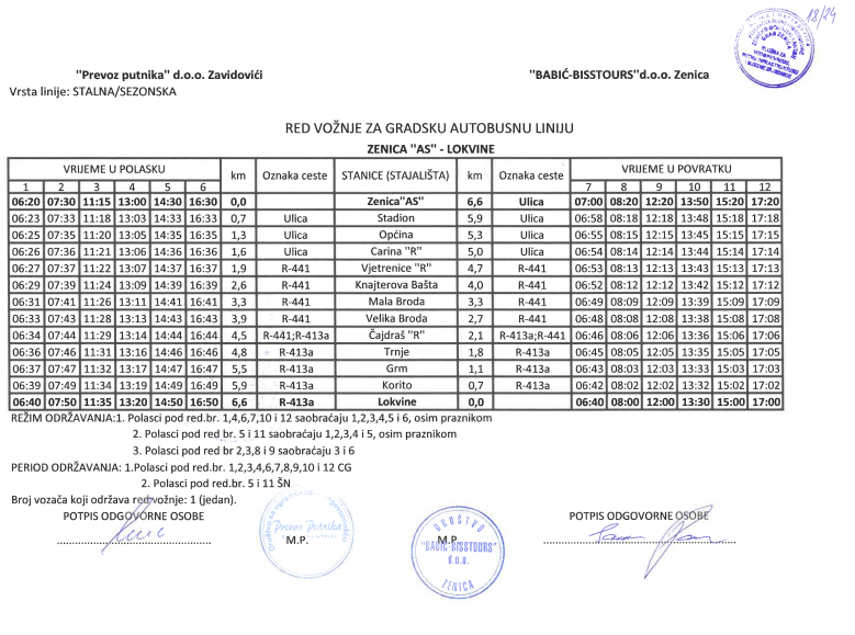 Obavještavamo vas da će od 1. jula 2024. godine stupiti na snagu novi registar redova vožnje za gradski prijevoz u Zenici, u skladu s Ugovorom o povjeravanju obavljanja djelatnosti gradskog prijevoza između Grada Zenica i konzorcija Prevoza putnika d.o.o. Zavidovići – Biss-tours Zenica. Služba za vodoprivredu, putnu infrastrukturu i mjesne zajednice ovjerila je redove vožnje na period od 3 godine, kako je definisano Rješenjem o utvrđivanju Mreže linija gradskog prijevoza.