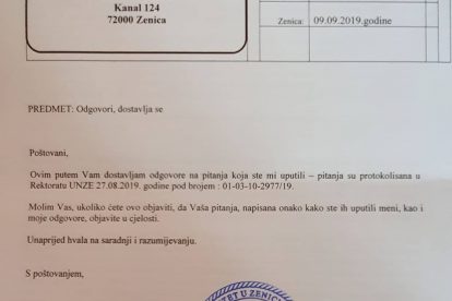 Portal Zenicablog je izvještavao o slučaju “potvrde o nevođenju postupka” prilikom (re)izbora dekana Metalurško-tehnološkog fakulteta Univerziteta u Zenici (UNZE), i to NA OVOM LINKU nakon čega smo dobili i kratak odgovor rektora UNZE dr. Damira Kukića, kojeg smo objavili OVDJE.