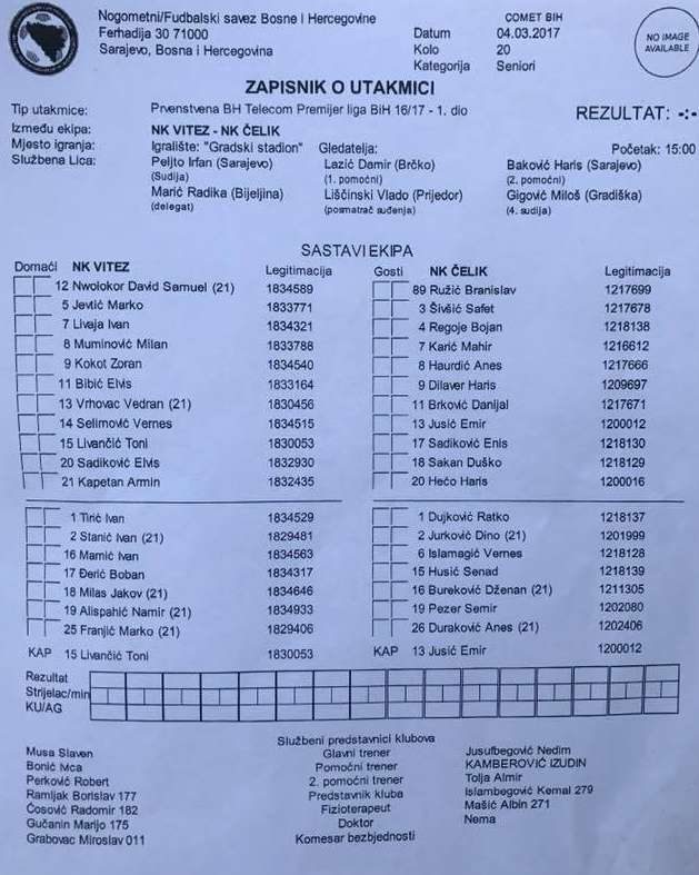 ČELIK: Ružić, Šivšić, Regoje, Karić, Haurdić, Dilaver, Brković, Jusić, Sadiković, Sakan, Hećo. (Glavni trener Nedim Jusufbegović);